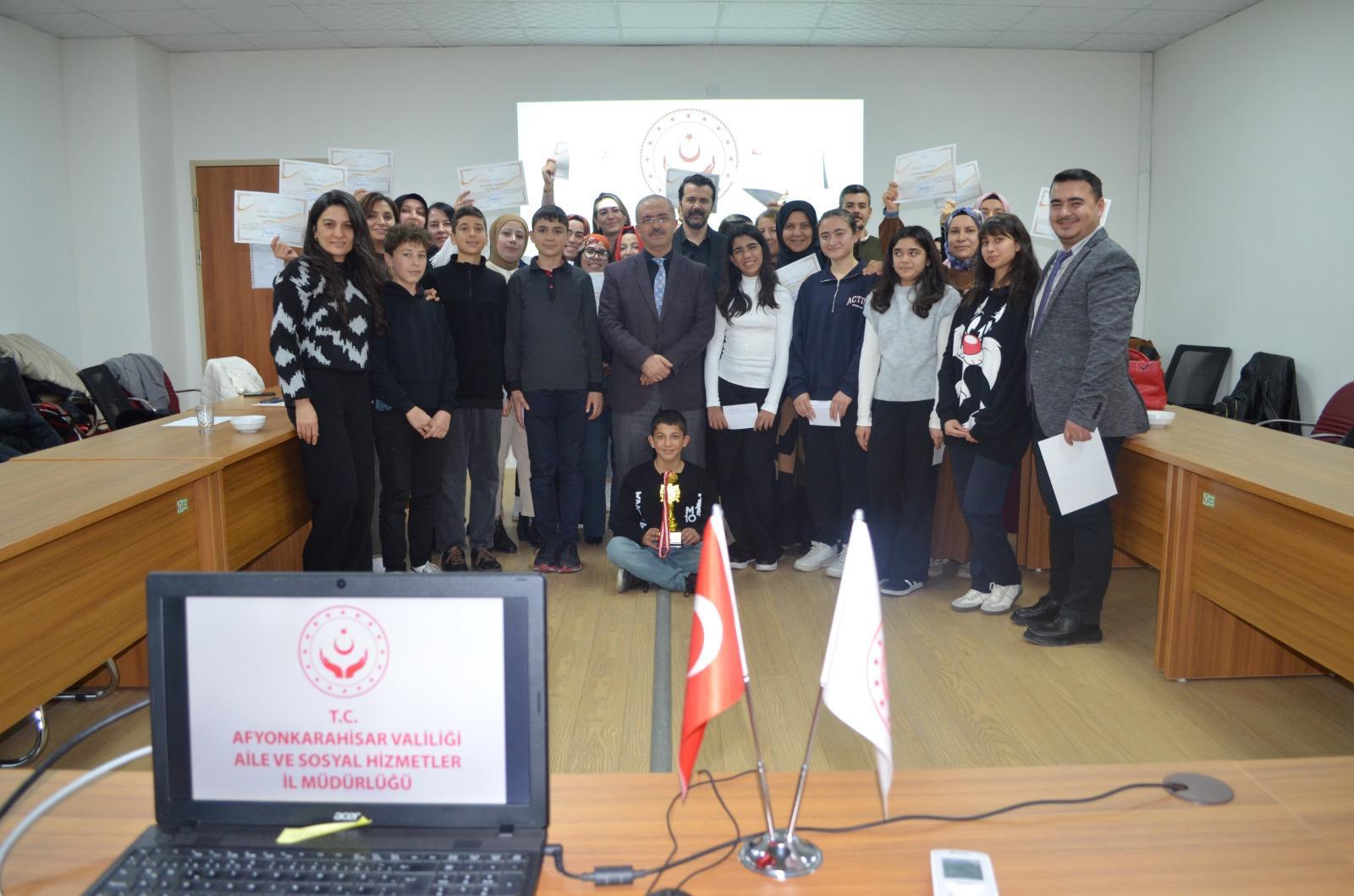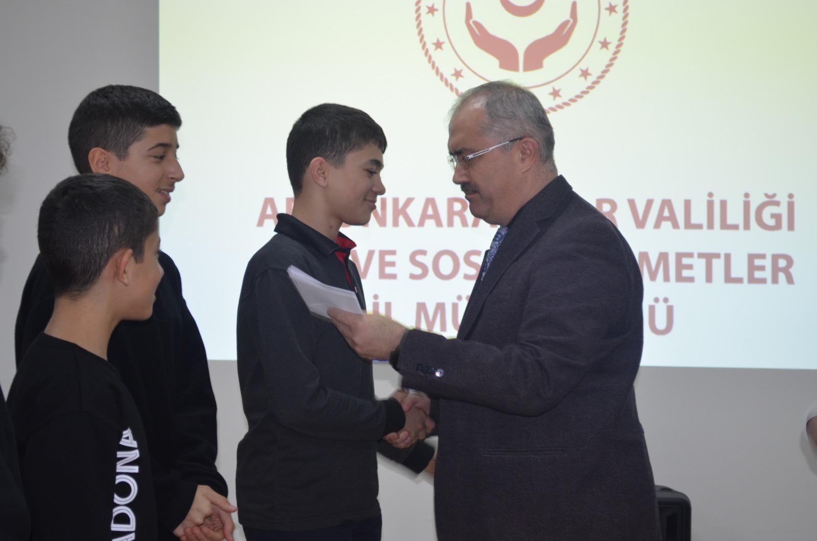 Bu kıymetli başarının ardından çocuklarımız ödüllendirilirken; onları sevgiyle büyüten, her adımda yanlarında olan kuruluş müdürümüz, ev sorumlularımız ve büyük bir özveriyle görevini sürdüren bakıcı annelerimiz, İl Müdürümüz Sayın Bilal Erdoğan tarafından teşekkür belgeleriyle onurlandırıldı.