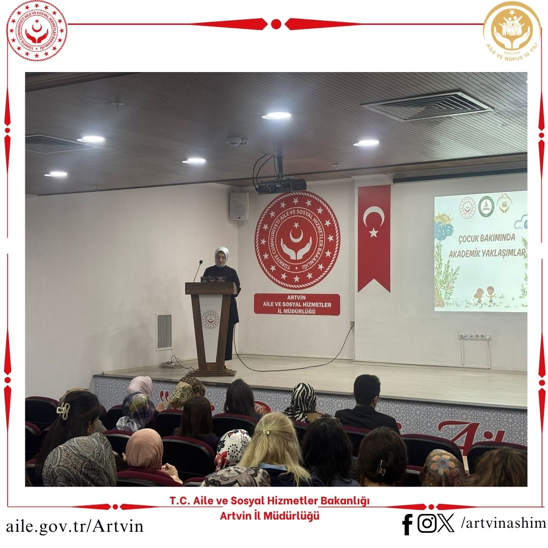 Artvin Çoruh Üniversitesi Sağlık Bilimleri Fakültesi ile iş birliği kapsamında, bakım personelimiz ve meslek elemanlarımıza yönelik “Çocuk Bakımında Akademik Yaklaşımlar” konulu eğitim düzenlendi.Program sonunda İl Müdürümüz Sayın Nevim Öz tarafından hocalarımıza plaket takdimi gerçekleştirildi.Eğitime katkılarından dolayı Sağlık Bilimleri Fakültesi Dekanı Prof. Dr. Sayın Hatice İskender ve değerli akademisyenlere teşekkür ederiz.