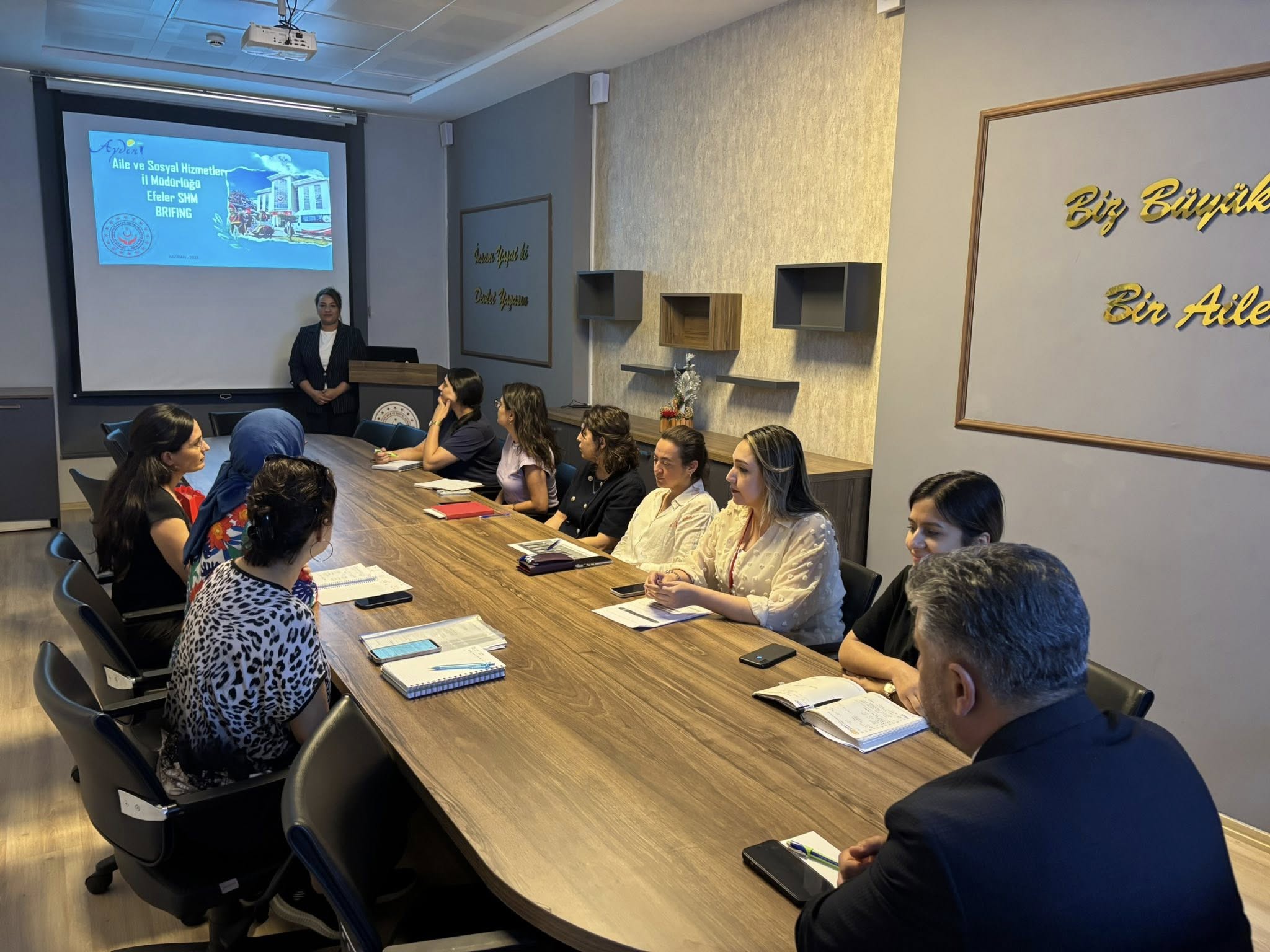 İl Müdürümüz Abdullah Kömürcüoğlu efeler Sosyal hizmet merkezi Müdürlüğümüzün Bakanlığımızın ilçemizde yürütmüş olduğu faaliyetlerinin yılın ilk 6 ayini değerlendirme ve brifing alarak vatandaşlarımıza en uygun hizmet modellerine ulaştırılması konusunda toplantı gerçekleştirdi.