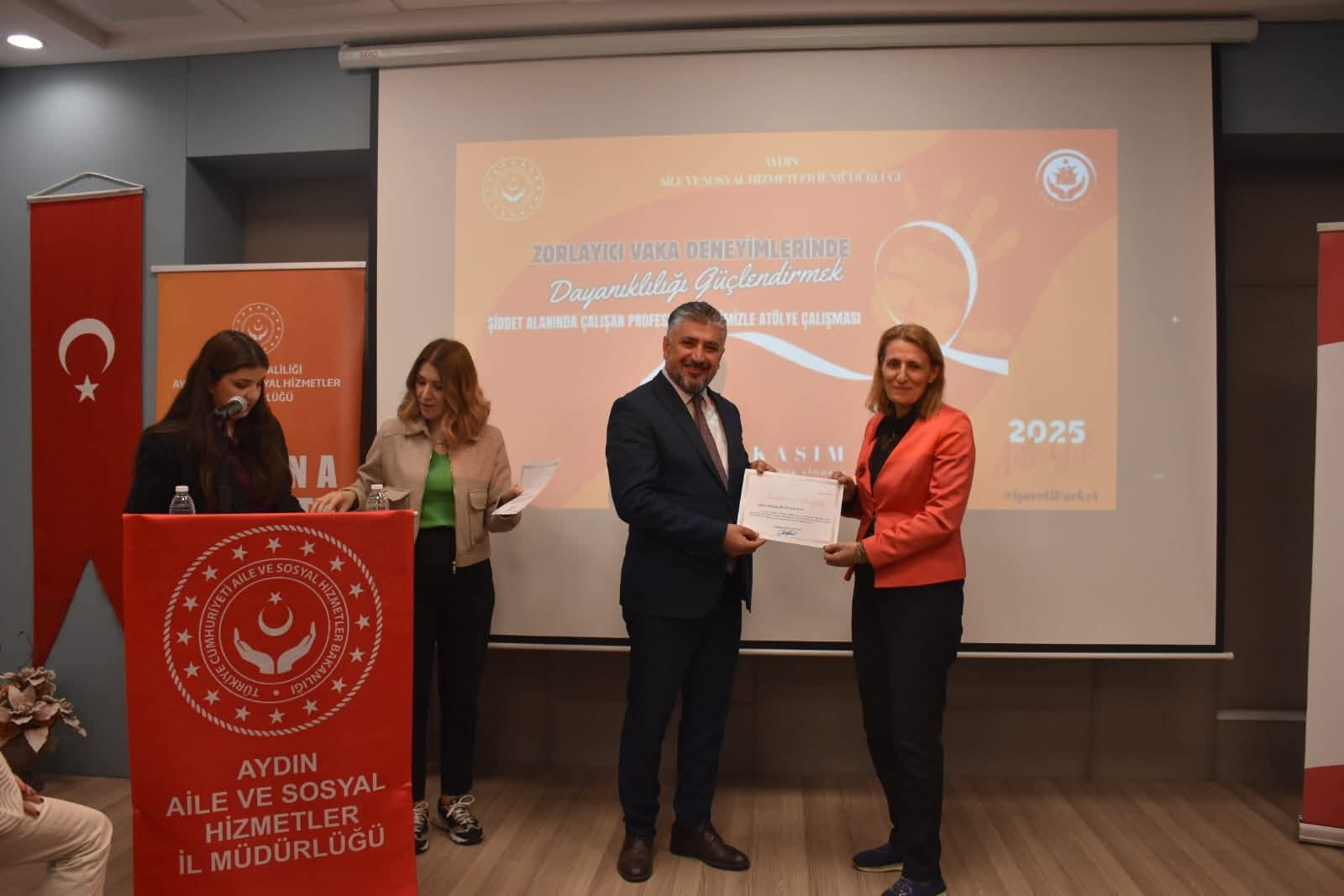 “Zorlayıcı Vaka Deneyimlerinde Dayanıklılığı Güçlendirmek Amacıyla Şiddet Mağdurlarıyla Çalışan Meslek Elemanlarına Yönelik Psikolojik Destek Atölyesi” kapsamında, Prof. Dr. Hülya Şahin Baltacı tarafından kurumlarımızda kadın hizmetleri alanında görev yapan personellerimize yönelik değerli bir sunum ve eğitim gerçekleştirilmiştir.