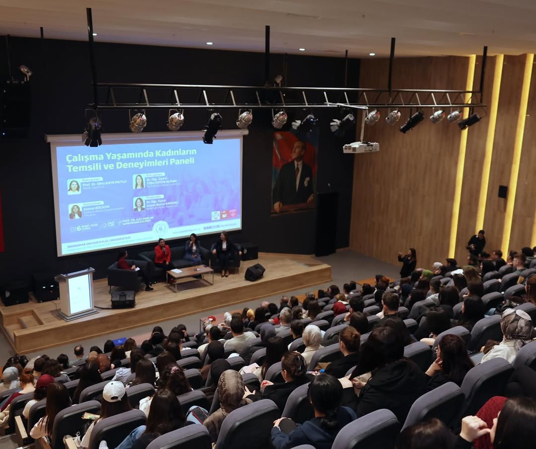 Bandırma Onyedi Eylül Üniversitesi Kadın, Aile ve Toplum Hizmetleri Uygulama ve Araştırma Merkezi tarafından düzenlenen “Çalışma Yaşamında Kadınların Temsili ve Deneyimleri” paneli, üniversite öğrencilerinin yoğun katılımıyla gerçekleştirildi.