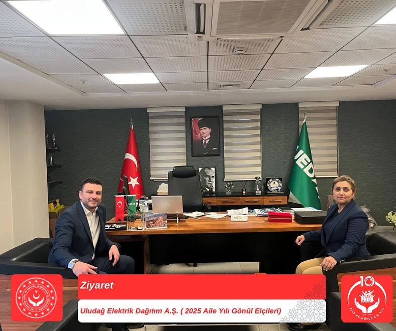 İl Müdürümüz Sayın Emine BÖÇKÜN, Aile Yılı kapsamında yürütülen çalışmalara verdikleri destek dolayısıyla Uludağ Elektrik Dağıtım A.Ş. İşletme Müdürü Sayın Barış Can TOYGUN’u ziyaret etti.