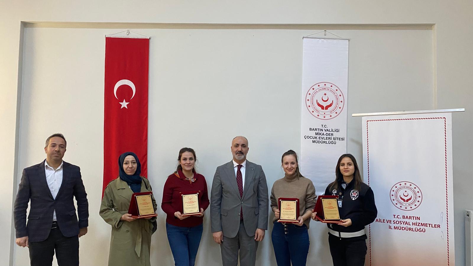 İl Müdürümüz Yavuz Korkmaz, Müdürlüğümüzde görev yapmakta iken görevde yükselme ve unvan değişikliği suretiyle başka illere ataması yapılan çalışma arkadaşlarımıza teşekkür belgelerini takdim etti.
