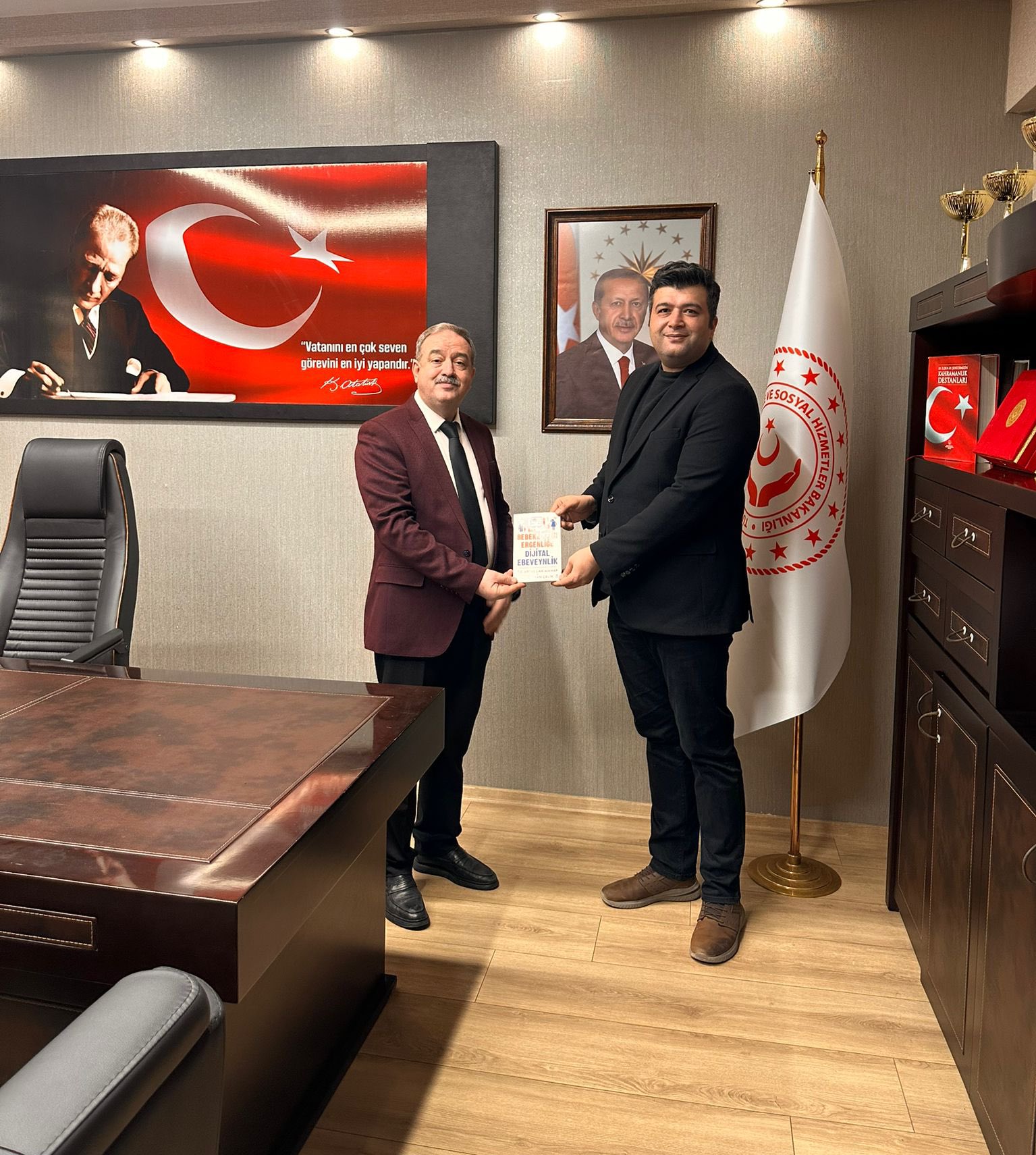 Batman Üniversitesi öğretim üyesi Dr.Abdullah Manap İl Müdürümüz Mehmet Zeki Eryarsoy’u makamında ziyaret ederek yazarlarından olduğu “Bebeklikten Ergenliğe Dijital Ebeveynlik”isimli kitabı hediye etti.Ziyaretleri için teşekkür ederiz.