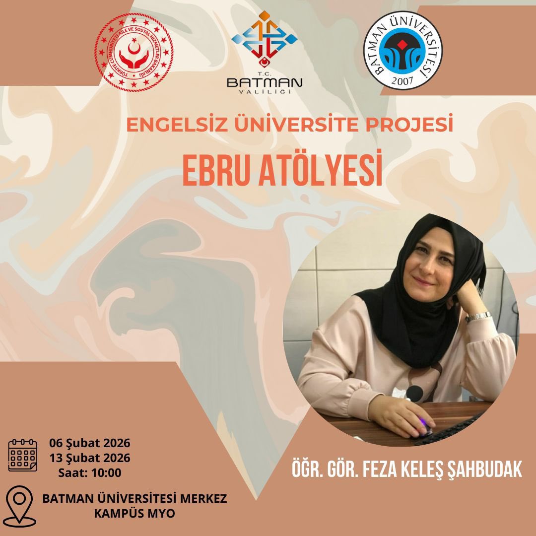 İl Müdürlüğümüze bağlı Engelli Aktif Yaşam Merkezinden hizmet alan özel bireylerimiz ve aileleri İl Müdürlüğümüz ile Batman Üniversitesi arasında imzalanan Engelsiz Üniversite Projesi kapsamında “Ebru Atölyesi” ne katıldılar.