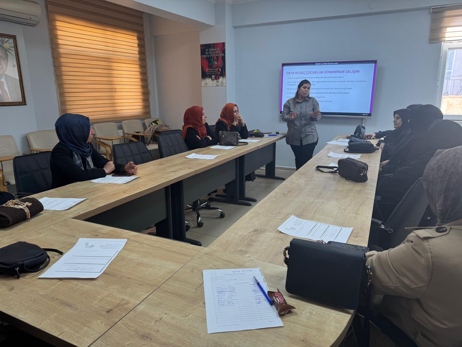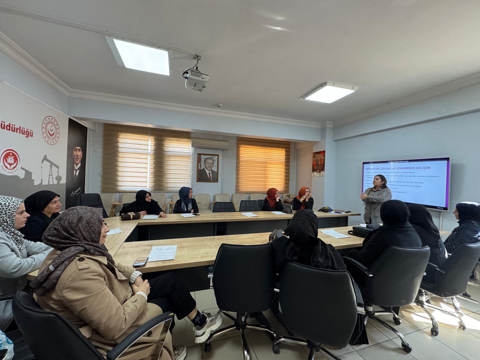 İl Müdürlüğümüze bağlı Batman Sosyal Hizmet Merkezi Müdürlüğü Eğitim ve Danışmanlık Birimi tarafından SED Hizmetinden faydalanan ailelere Modüler Aile Eğitim Programı kapsamında ' Orta ve Geç Çocukluk Döneminden Ergenliğe Gelişim' eğitimi kapalı oturum şeklinde verilmiştir.