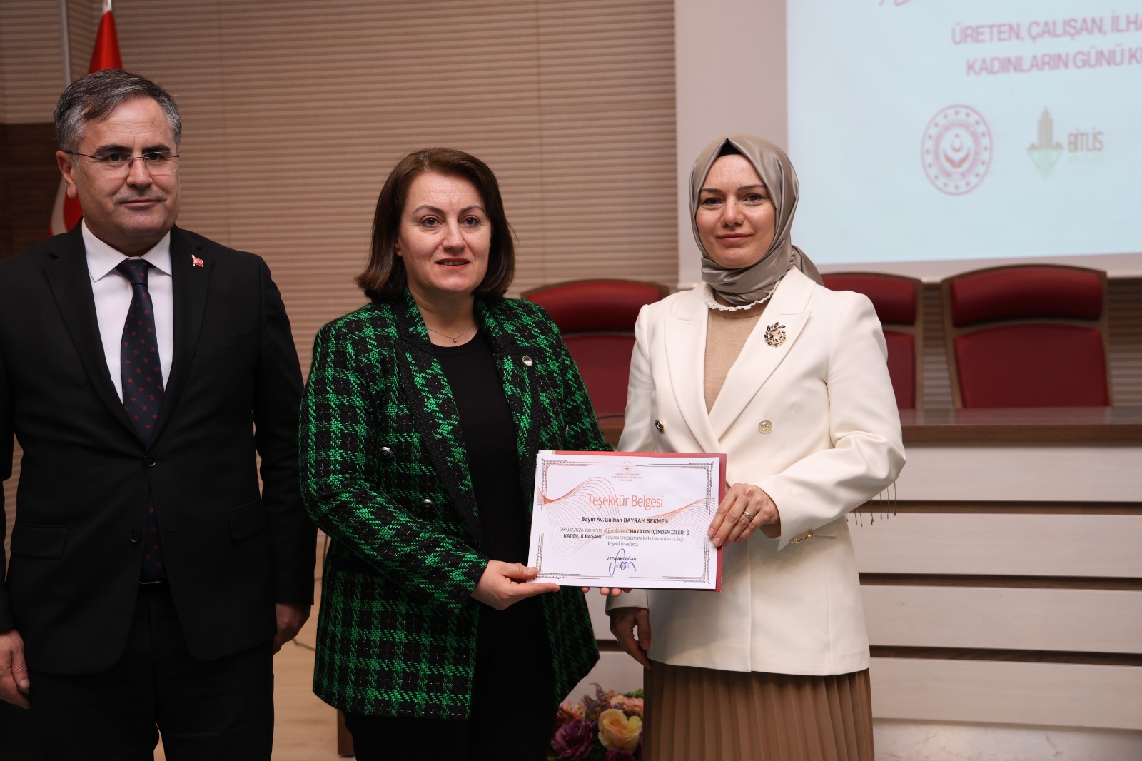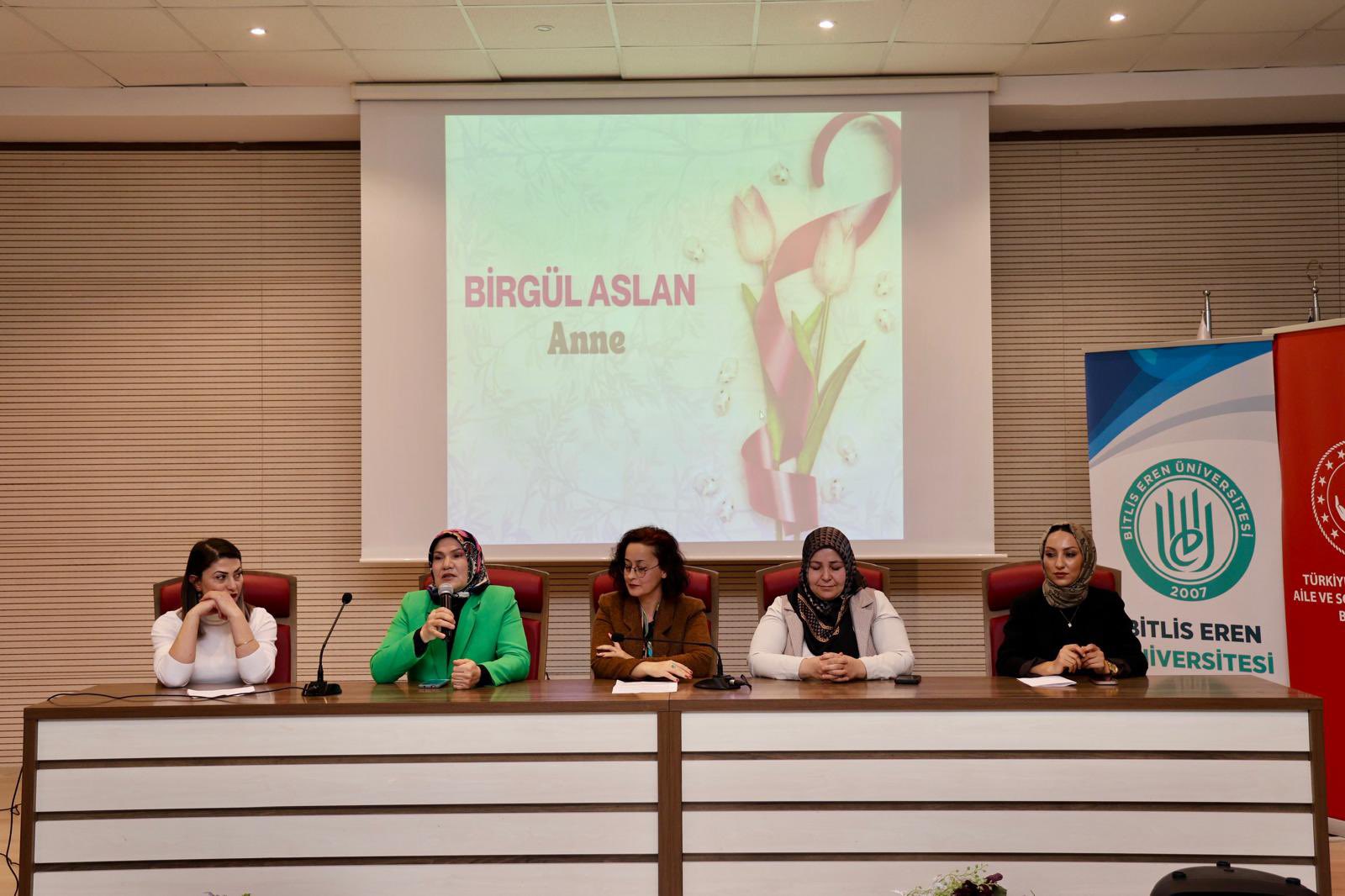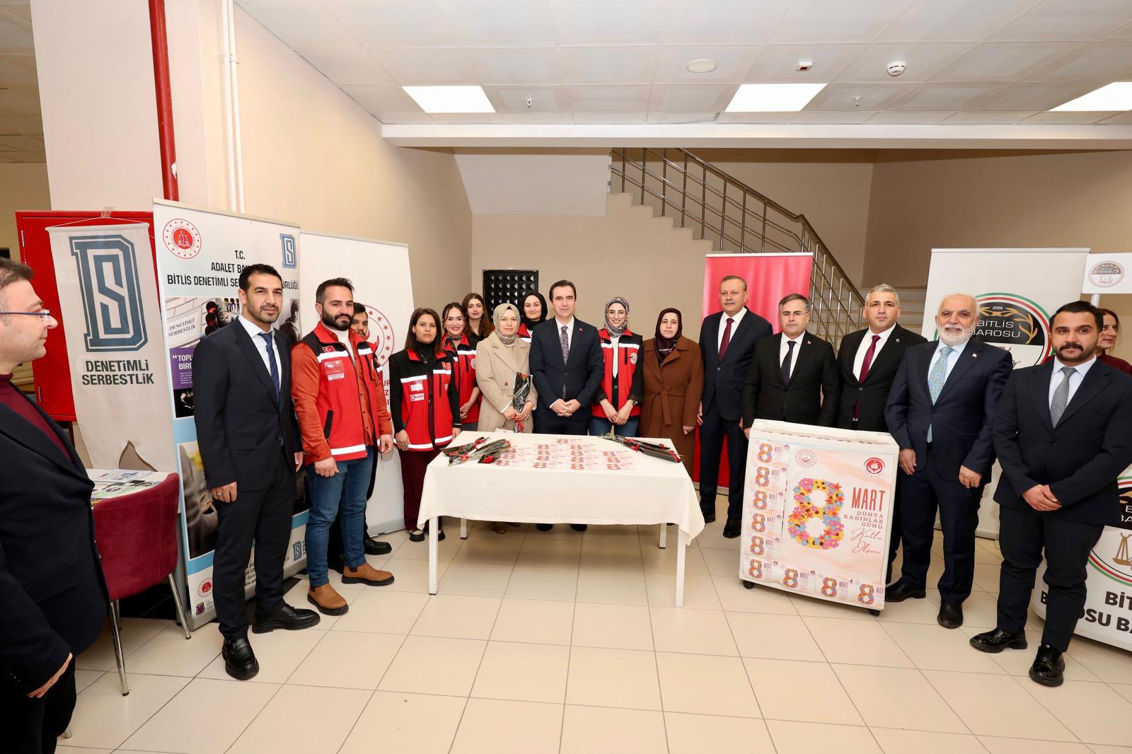 Valimiz Sayın Ahmet Karakaya, eşi Özlem Karakaya Hanımefendi ile birlikte 8 Mart Dünya Kadınlar Günü dolayısıyla düzenlenen “Hayatın İçinden İzler: 8 Kadın 8 Başarı” söyleşi programına katıldı. Valiliğimiz himayelerinde, Bitlis Eren Üniversitesi ile Aile ve Sosyal Hizmetler İl Müdürlüğümüz koordinesinde gerçekleştirilen programda; hayatın farklı alanlarında başarı hikâyeleriyle öne çıkan kadınlar tecrübelerini katılımcılarla paylaştı. Kadınların azmi, emeği ve kararlılığıyla elde ettikleri başarıların anlatıldığı söyleşide, toplumsal hayatta kadının rolü ve katkıları vurgulandı. Sayın Valimiz konuşmalarında; kadınların toplumun her alanında önemli görevler üstlendiğini belirterek eğitimden ekonomiye, sanattan spora kadar birçok alanda elde edilen başarıların gurur verici olduğunu ifade etti. Kadınların güçlenmesinin toplumun güçlenmesi anlamına geldiğini vurgulayan Valimiz, tüm kadınların 8 Mart Dünya Kadınlar Günü’nü kutladı. Program kapsamında kurulan stantları da ziyaret eden Sayın Valimiz ve Özlem Karakaya Hanımefendi, yürütülen çalışmalar hakkında yetkililerden bilgi aldı. Program sonunda Sayın Valimiz, Özlem Karakaya Hanımefendi ve Aile ve Sosyal Hizmetler İl Müdürümüz Vefa Akdoğan tarafından programa katılan kadınlara karanfil takdim edildi. Programa; Bitlis Eren Üniversitesi Rektörü Sayın Prof. Dr. Necmettin Elmastaş, Bitlis Baro Başkanı Sayın Av. Gülhan Bayram Sekmen, İl Jandarma Komutanı Sayın Tuğgeneral Barış Soyal, İl Emniyet Müdürü Sayın Koray Şensoy, Aile ve Sosyal Hizmetler İl Müdürümüz Vefa Akdoğan, kurum amirleri, akademisyenler ve çok sayıda vatandaşımız katıldı.