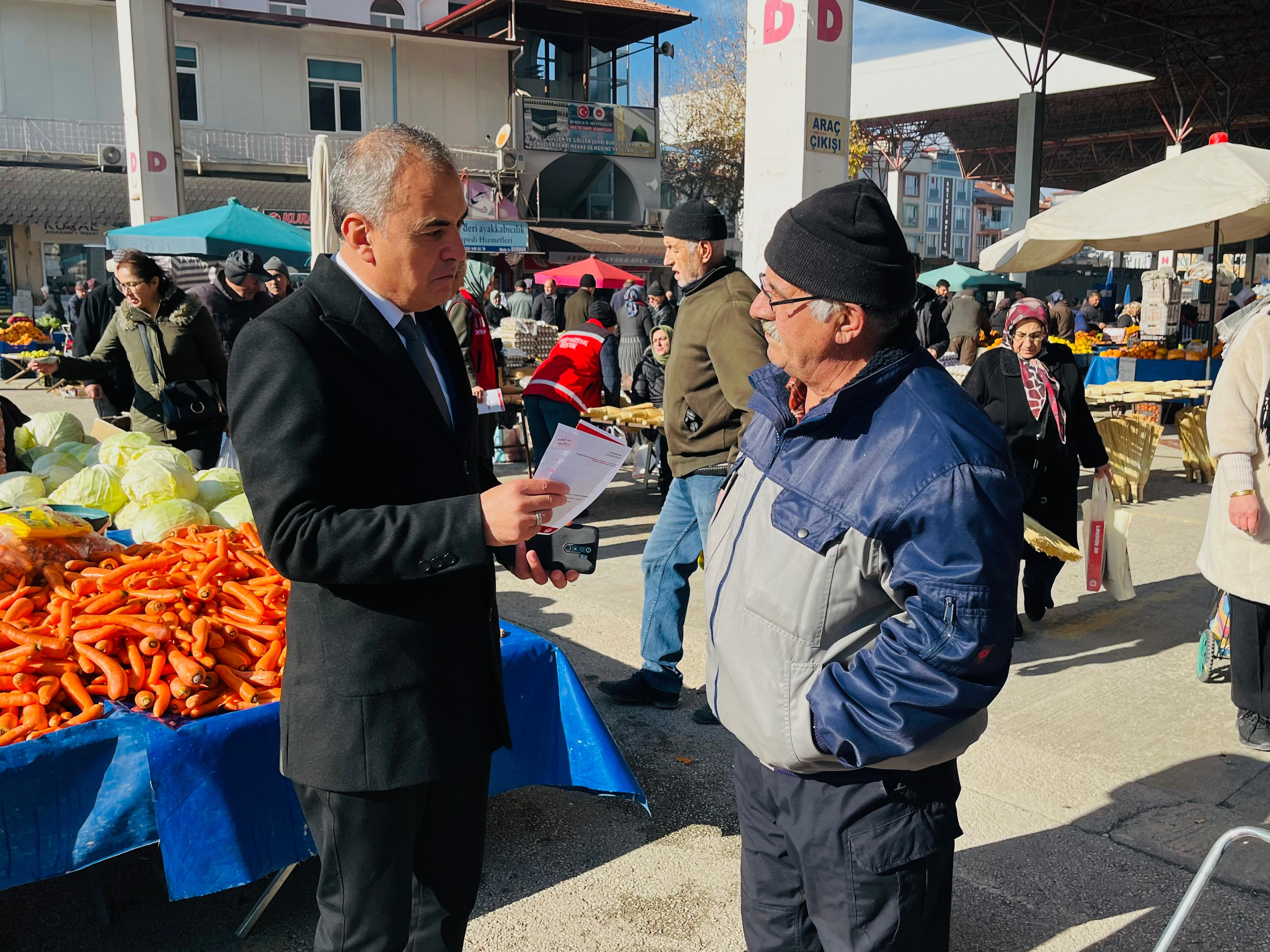Müdürlük hizmet modellerimizi tanıtan broşürlerimizi vatandaşlarımıza ulaştırdıktan sonra, yöneticilerimiz pazardaki hemşehrilerimizle birebir iletişim kurarak taleplerini ve önerilerini dinledi.