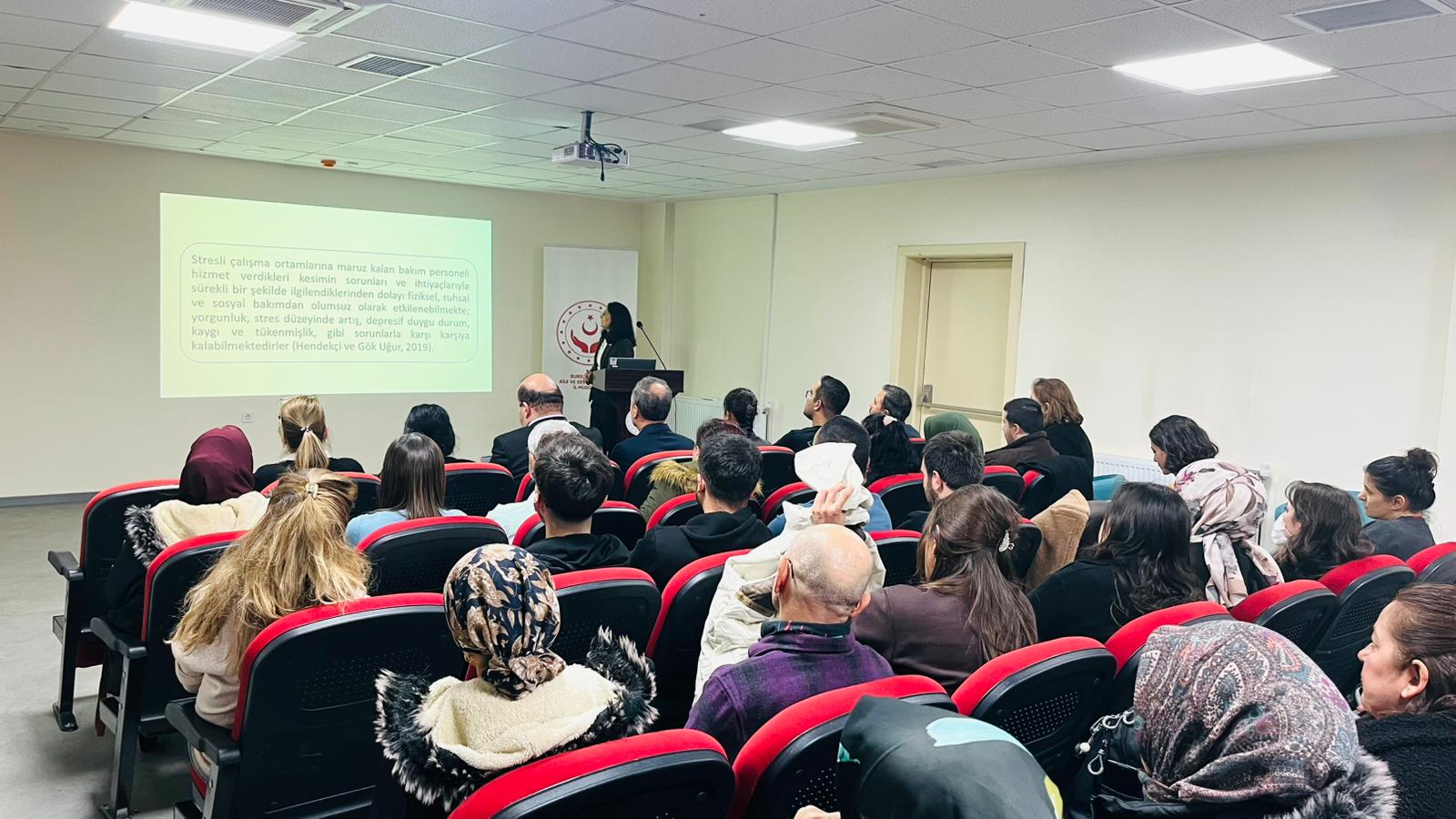 Eğitime; İl Müdürümüz Mustafa Çakır, İI Müdür Yardımcımız Eray Paşabeyoğlu ile Şube Müdürlerimiz Esra Baysal ve Esra Duygu Akbaş da katılım sağladı. Burdur Mehmet Akif Ersoy Üniversitesi Sağlık Bilimleri Fakültesi Gerontoloji Bölümü öğretim üyesi Dr. Öğr. Üyesi Nurvet Büyükyörük tarafından bakım sürecinde