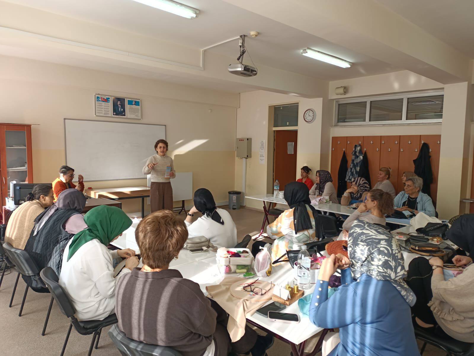 Nilüfer Halk Eğitim Merkezinde farklı branşlarda eğitim alan kursiyerlerle bir araya gelinmiş; ŞÖNİM hizmetleri, KADES uygulaması ve başvuru mekanizmaları hakkında bilgilendirmeler yapılmıştır.