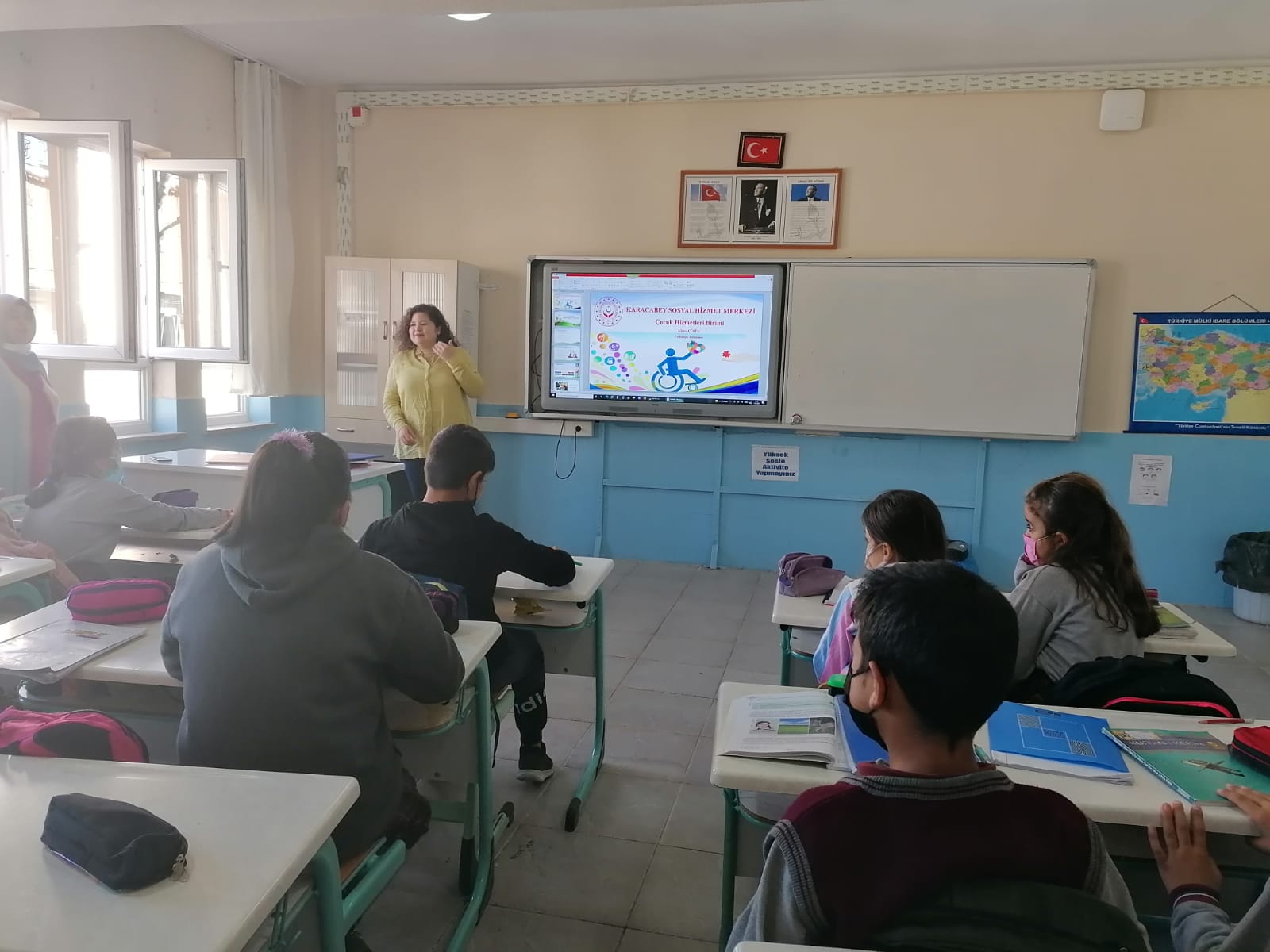 İlçelerde de 3 Aralık Engelliler Günü etkinliklerini devam ettiren İl Müdürlüğümüz bünyesinde hizmet veren 10 Sosyal Hizmet Merkezimiz tarafından 17 ilçede okulların 3. ders saatinde Bakanlığımız tarafından hazırlanan kamu spotunun izlenilmesi sağlandı ve çocuklara farkındalık eğitimleri verildi.
