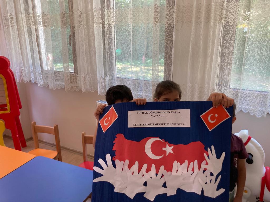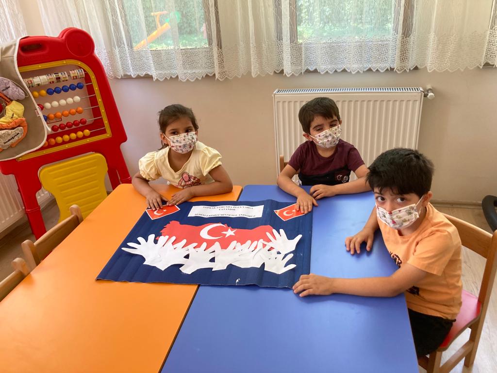 15 Temmuz Demokrasi ve Milli Birlik Gününde Sırameşeler Çocuk Evleri Sitesi 4-6 yaş grubu çocuklarımız pano çalışması yaparak Türkiye Geçilmez diye haykırdı