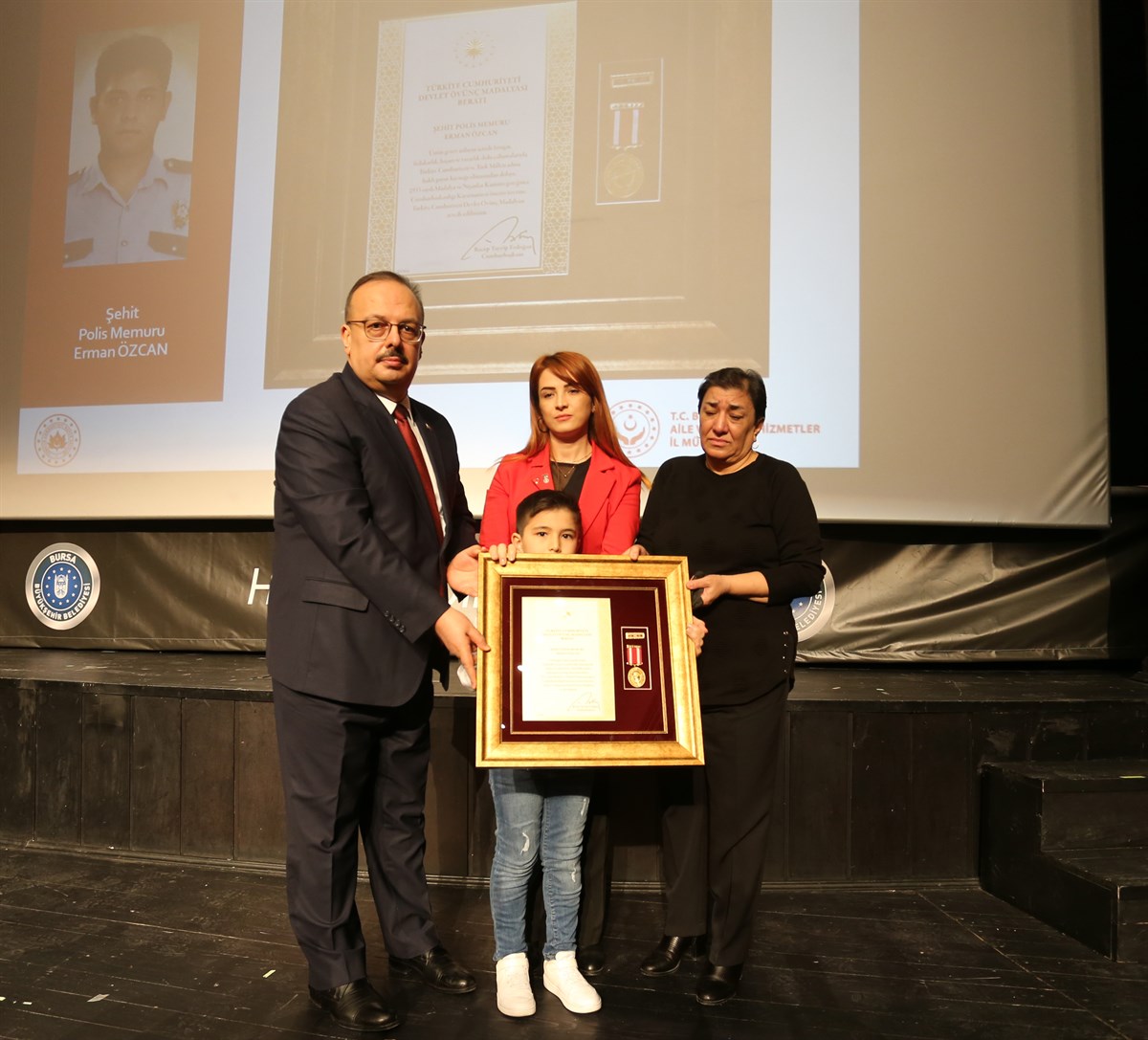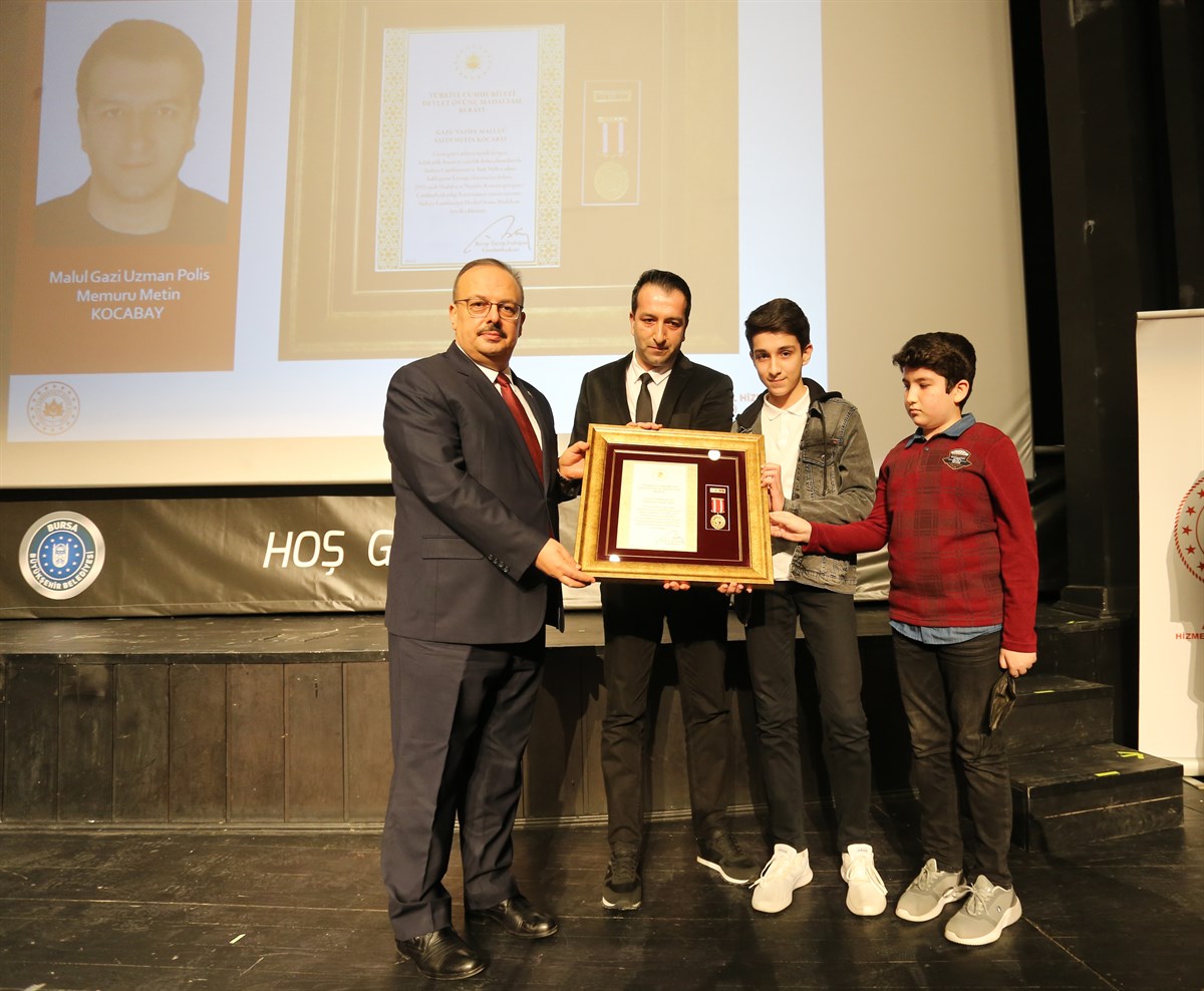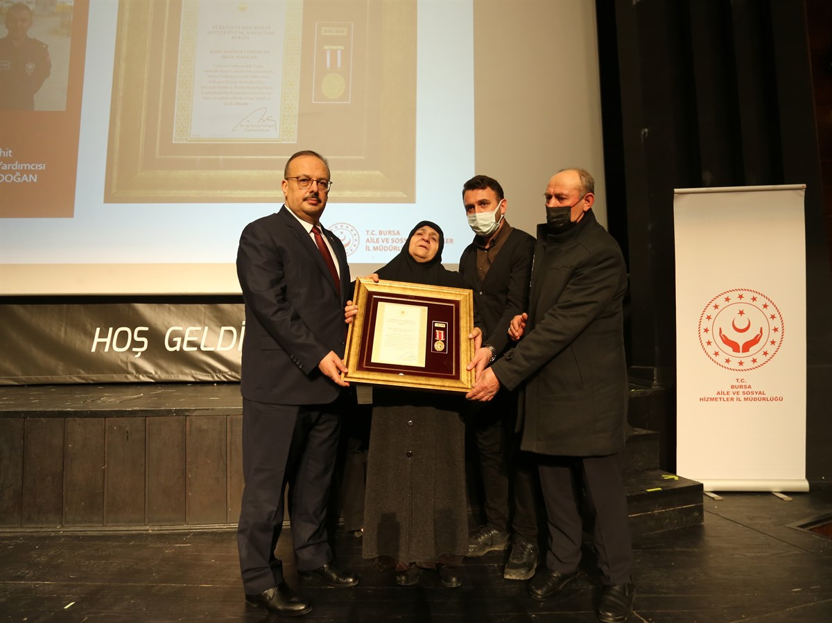 Şehitlerimizin ve Gazilerimizin öz geçmişlerinin okunmasının ardından Cumhurbaşkanımız adına Sayın Valimiz Yakup CANBOLAT tarafından yurt içinde ve yurt dışında vatanımızın birlik ve bütünlüğünün korunması, huzur ve güvenliğin sağlanması için canlarını seve seve feda eden aziz şehitlerimizin yakınlarına ve kahraman gazilerimize Devlet Övünç Madalyası ve Beratlarını taktim edildi.