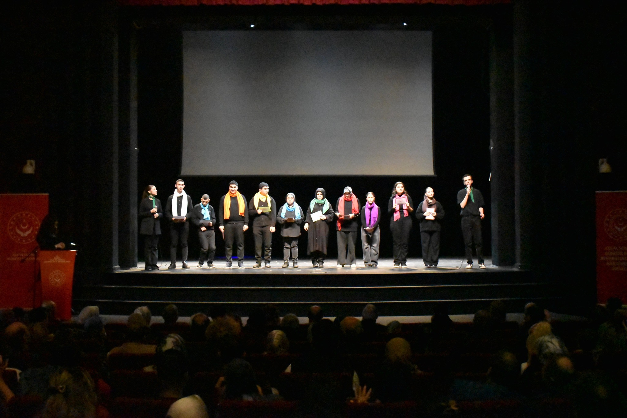 Sahne, Celal Sönmez Güdüzlü Bakım Merkezmizde hizmet alan bireylerimiz ve öğretmenlerinin aylardır süren büyük emekleri ile adeta bir şölen alanına dönüştü: