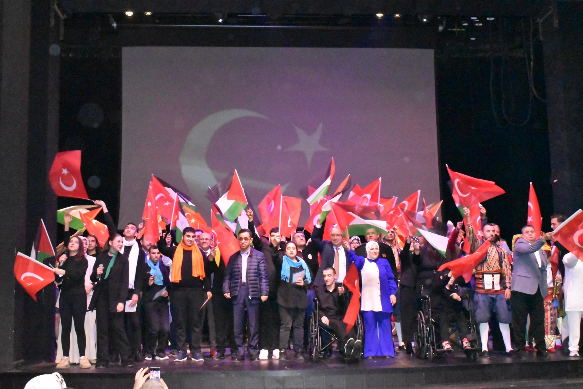 Engelli bireylerimizin yetenek ve emeğini sahneye taşıyan program ; koro ve solo dinletileriyle melodilerin birleştirici gücünü sahneye taşırken, her dizesi umutla örülmüş şiir performanslarıyla izleyicilere duygu dolu anlar yaşattı. Sessizliğin içinden yükselen “Bir Mum da Sen Yak” Sessiz Farkındalık Gösterisi güçlü bir mesaj verirken, kültürümüzün coşkusunu yansıtan halk oyunları sahneye renk kattı. Gücün ve kararlılığın simgesi Kılıç Kalkan Gösterisi büyük alkış alırken, bir yılın emeğini ve üretimini görünür kılan İz Bırakan Eller Ürün Defilesi programın en özel anlarından biri oldu. Bu zengin içerikli gösteriler, izleyicilere unutulmaz bir deneyim sundu. Programın finalinde, Zeki Müren Güzel Sanatlar Lisesi öğrencilerinin hazırladığı “Şehrin Tüm Renkleri” adlı tiyatro gösterisi sahnelendi. Bursa’nın tarihi, kültürü ve ruhu; sahne ışıkları altında yeniden hayat buldu ve izleyicilere duygu dolu anlar yaşattı.