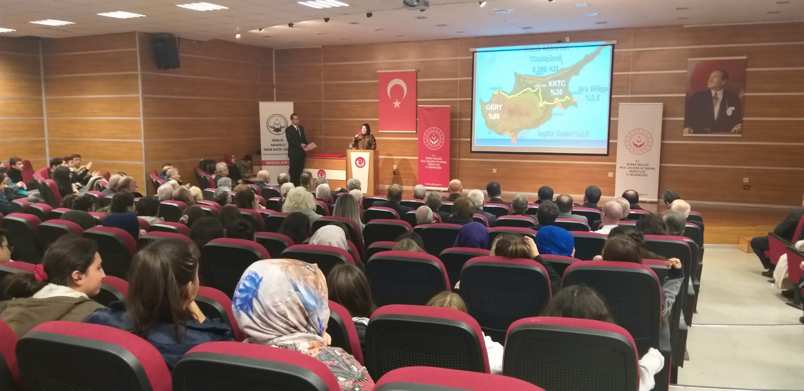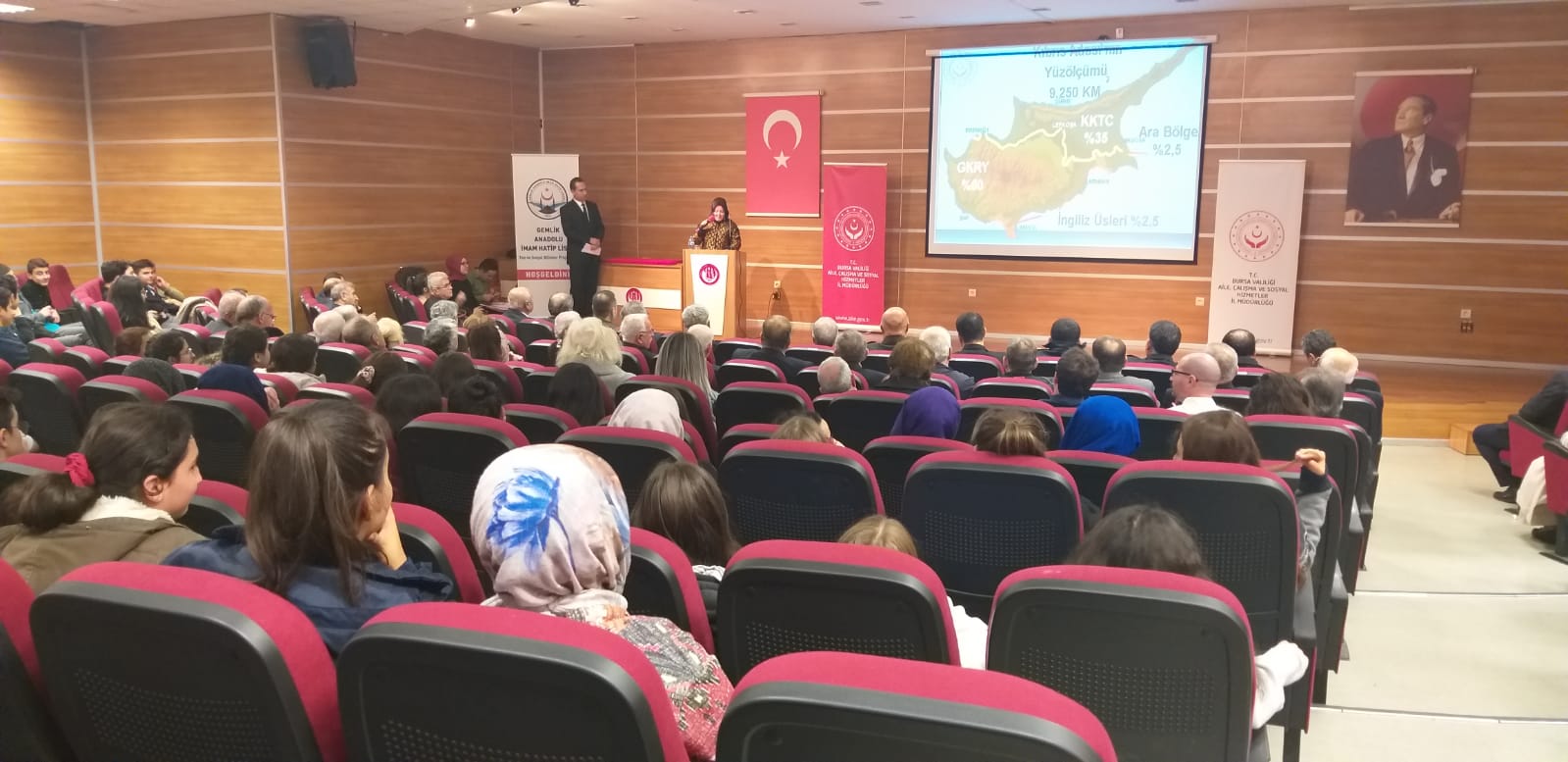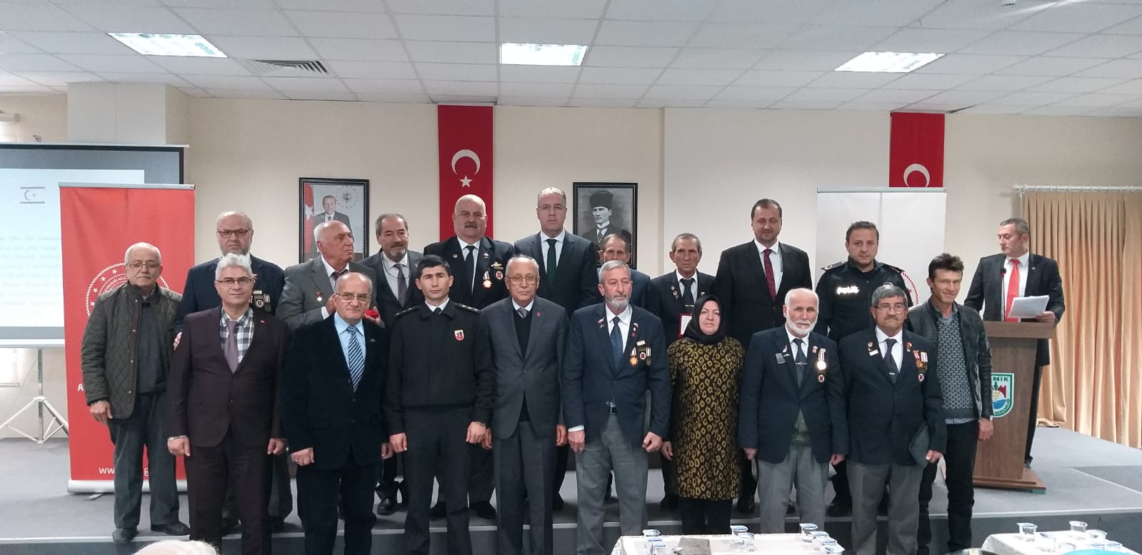 Gemlik Kaymakamımız Sayın Yaşar DÖNMEZ’ in ev sahipliğinde Çukurbahçe İmam Hatip Lisesi konferans salonunda; İlçe Garnizon Komutanı Tank. Albay Sacit SABUNCU, Gemlik Belediye Başkanı Yardımcısı Bayram DEMİR, İlçe Cumhuriyet Başsavcısı Ali ÜLGER, İlçe Jandarma Komutanı Binbaşı Mehmet Barış BOZKURT, İlçe Emniyet Müdürü Abdülkadir YÜCE, İl Müdür Yardımcımız Fikrîye AYDIN, Gemlik Sosyal Hizmet Merkezi Müdürü Yaşar YARAY, Şehit Yakınları ve Gaziler Birimi Personelimiz, Bursa Muharip Gaziler Dernek Başkanı Muzaffer UYAR’ ın katılımıyla gazilerimize Kuzey Kıbrıs Türk Cumhuriyeti Milli Mücadele Madalyası ve Beratı düzenlenen törenle takdim edildi.