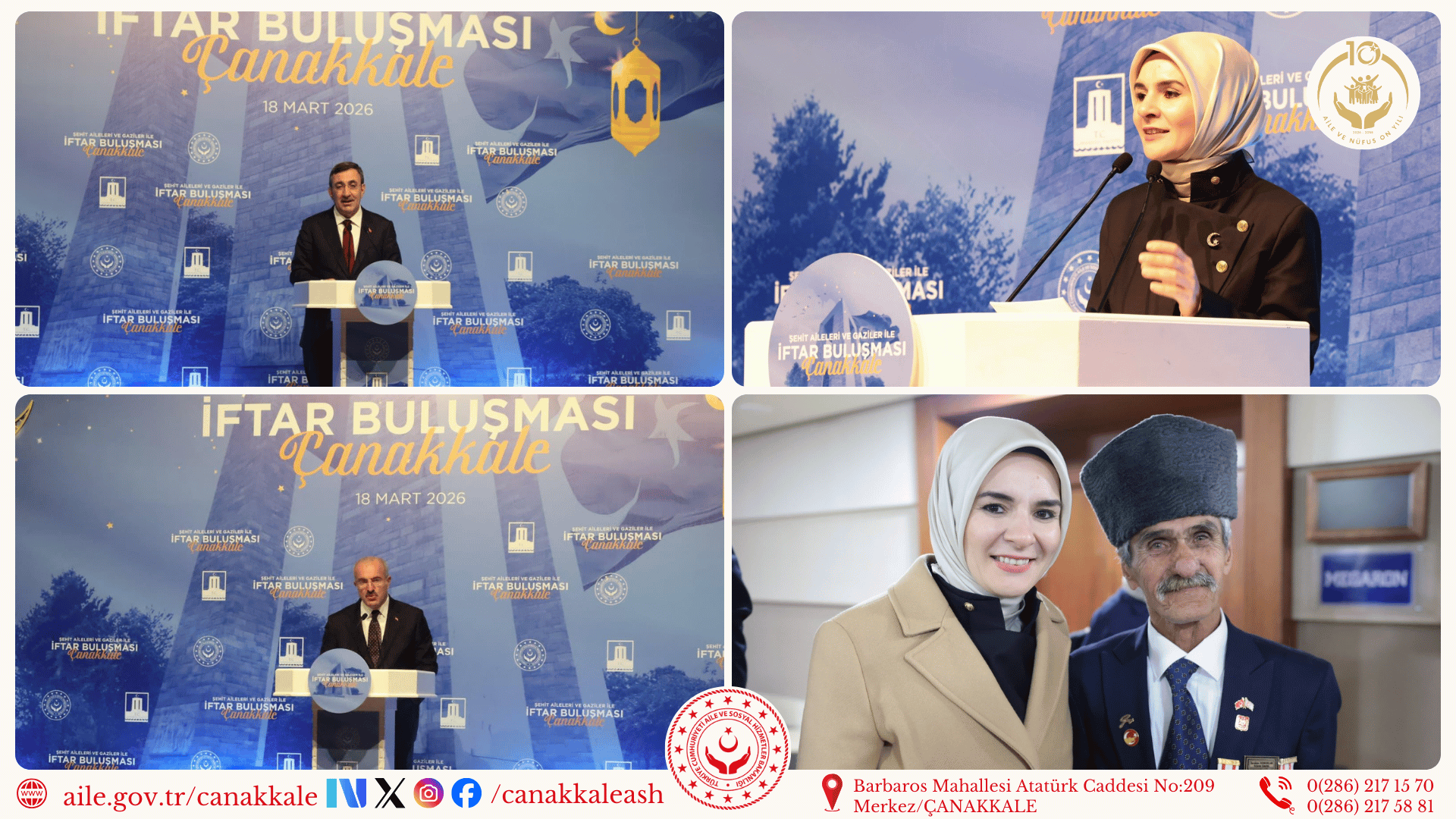 Aile ve Sosyal Hizmetler Bakanımız Sayın Mahinur ÖZDEMİR GÖKTAŞ, KKTC Çalışma ve Sosyal Güvenlik Bakanı Sayın Oğuzhan HASİBOĞLU, Valimiz Sayın Doç. Dr. Ömer TORAMAN ve eşi Neşe TORAMAN Hanımefendi, İl Müdürümüz Ali ÖMÜT ile il protokolünün katılımıyla gerçekleştirilen programda; birlik ve beraberliğimizin teminatı olan aziz şehitlerimiz rahmetle, kahraman gazilerimiz ise minnet ve şükranla yâd edildi.