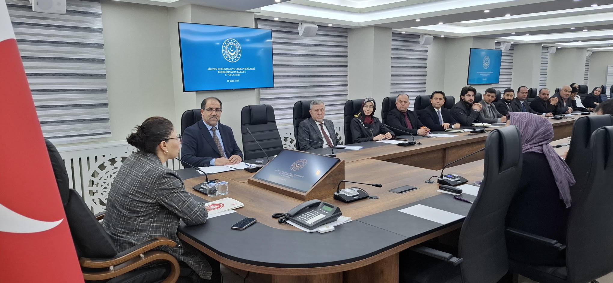 Ailenin Korunması ve Güçlendirilmesi İl Koordinasyon Kurulu Toplantısının ilki, Vali Yardımcımız Sayın Yeliz MERCAN başkanlığında; İl Müdürümüz Sahit AYDIN, Şube Müdürümüz Şemsi DAYI ve ilgili kamu kurum ve kuruluşlarının temsilcilerinin katılımıyla Vali Recep Yazıcıoğlu Toplantı Salonu’nda gerçekleştirildi.