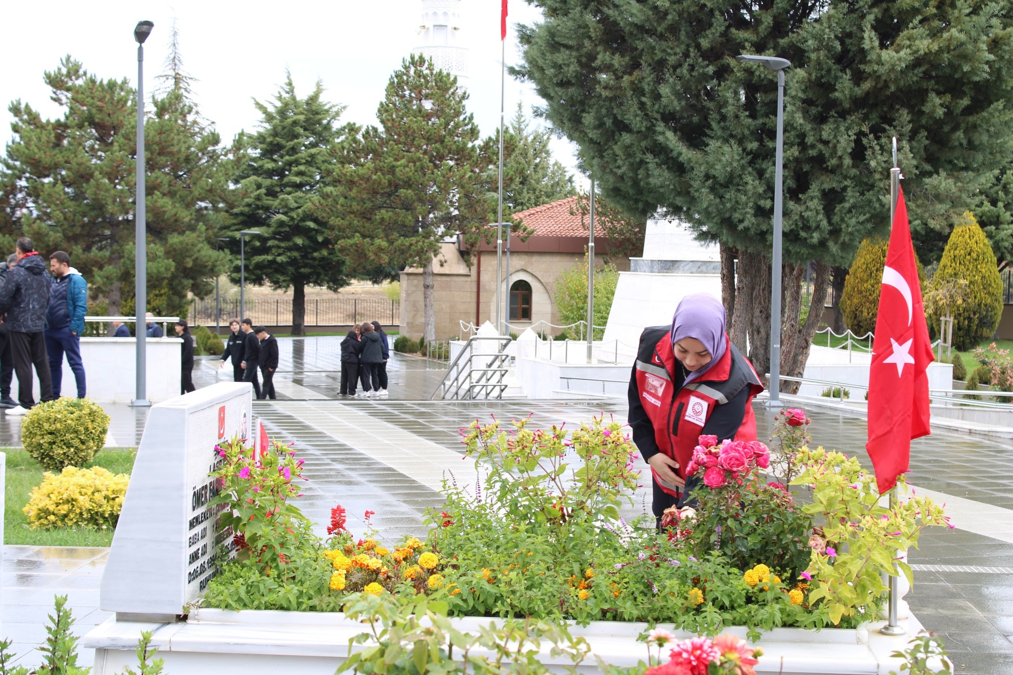 Ziyaret programı, aziz şehitlerimizin kabirlerine karanfil bırakıldı ardından Kur'an-ı Kerim'i okundu ve dualar edildi.