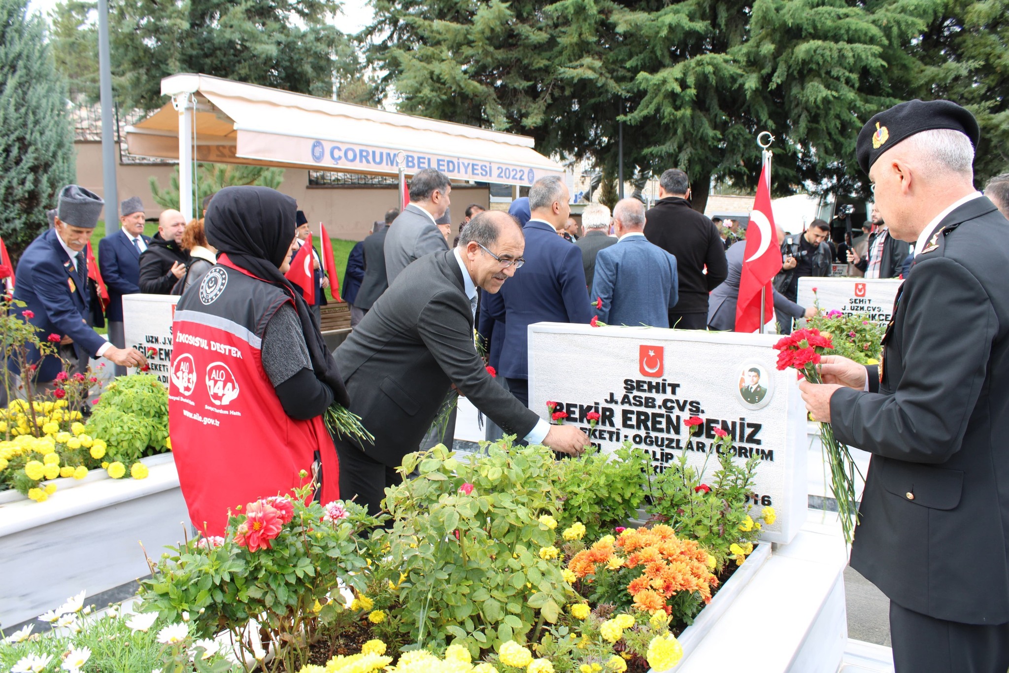 Valimiz Sayın Ali ÇALGAN, protokol üyeleri ile birlikte İl Müdürümüz Sahit AYDIN, kuruluş müdürlerimiz, kurum personellerimiz Çorum Şehitliğini ziyaret ettik.