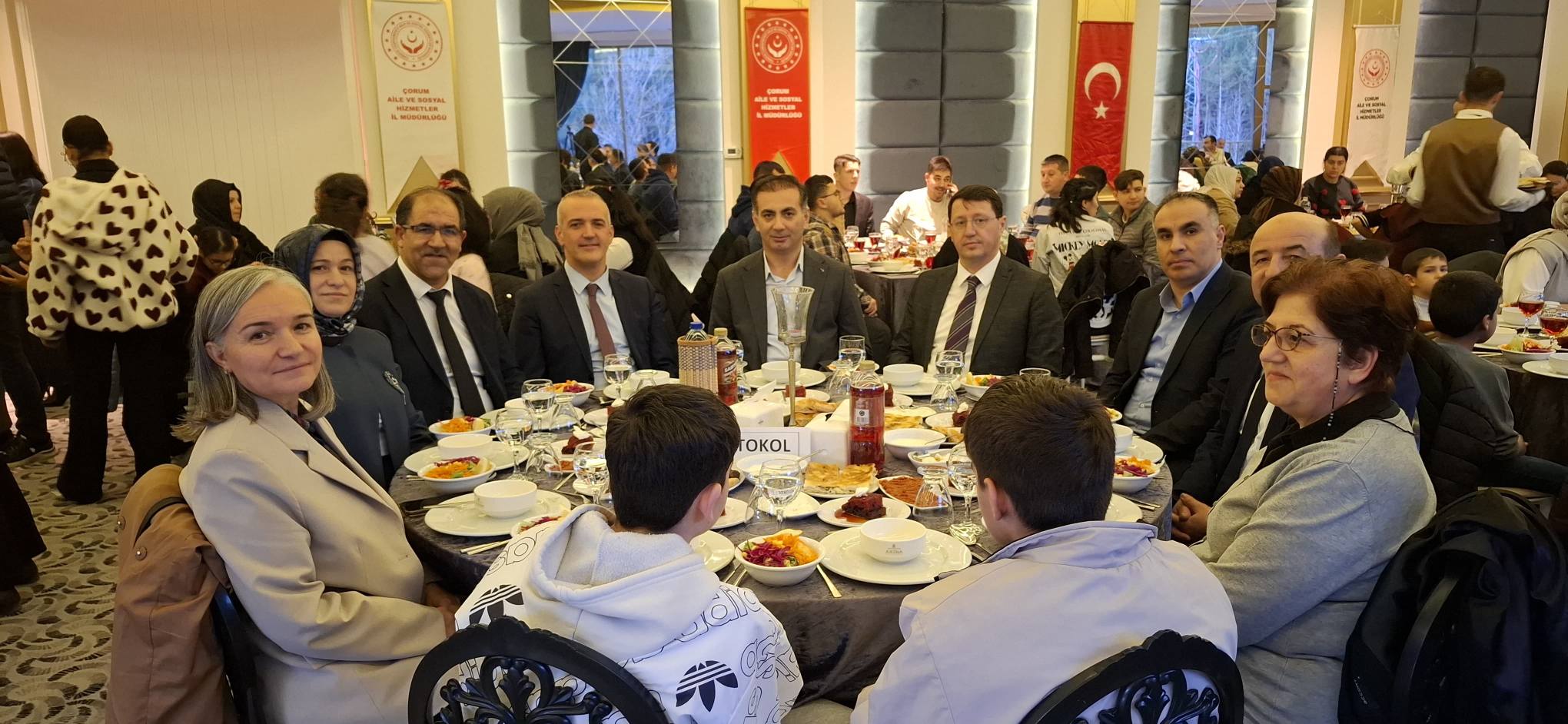 İftar programına İl Müdürlüğümüze bağlı 0–18 Yaş Çocuk Evleri Sitesi Müdürlüğü, 13–18 Yaş Çocuk Evleri Sitesi Müdürlüğü, Çocuk Evleri Koordinasyon Merkezi Müdürlüğü ile Engelsiz Yaşam Bakım, Rehabilitasyon ve Aile Danışma Merkezi Müdürlüğü bünyesinde korunma ve bakım altında bulunan çocuklarımız, kuruluş müdürlerimiz ve personelimiz katılım sağlamıştır.