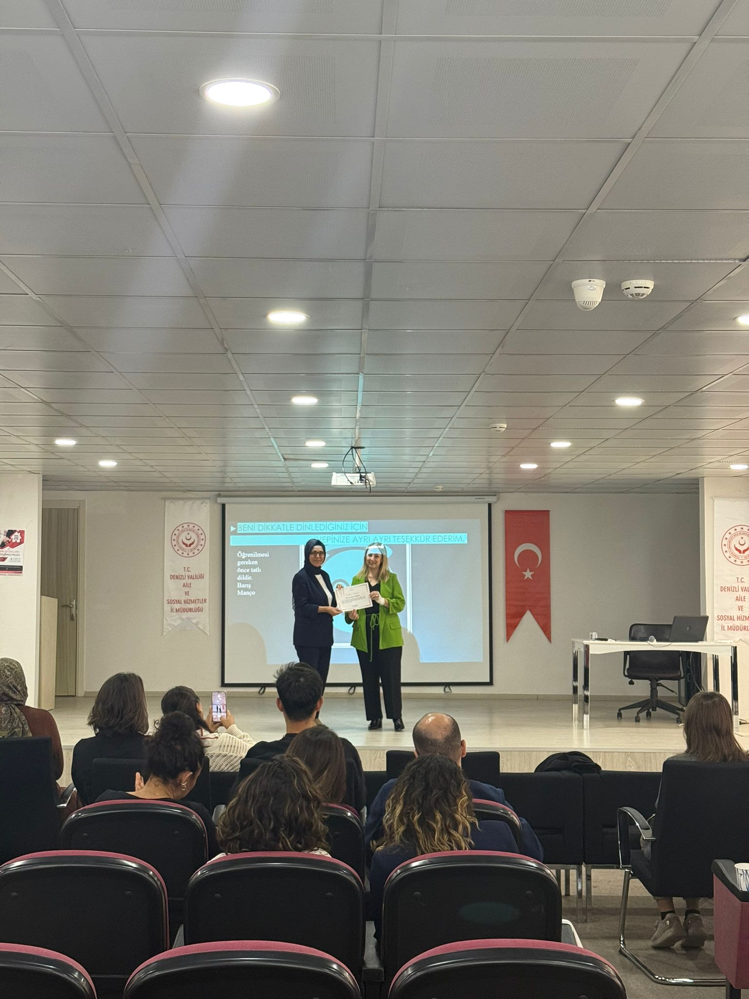 2025 Aile Yılı kapsamında yürütülen Aile Eğitim Programı çerçevesinde, eğitim veren personellerimize ve İl Müdürlüğümüze bağlı kuruluşlarda görev yapan çalışanlarımıza yönelik “Etkili Konuşma ve Diksiyon” konulu konferans, Pamukkale Üniversitesi Öğretim Üyesi Havva ERGÜR tarafından İl Müdürlüğümüz Konferans Salonunda gerçekleştirildi.