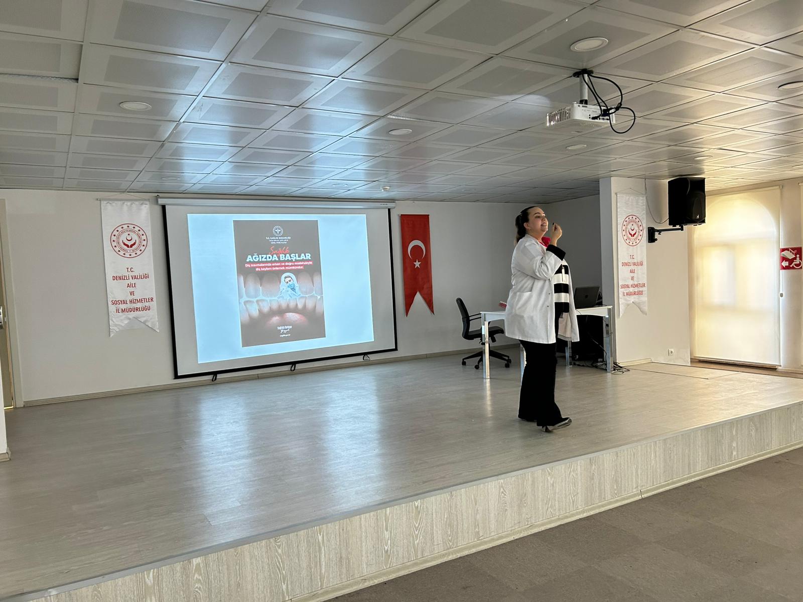 İl Müdürlüğümüz ve İl Sağlık Müdürlüğü iş birliğinde, kuruluşlarımızda bakım ve koruma hizmeti alan çocuklarımıza yönelik “Sağlıklı Beslenme” ile “Ağız ve Diş Sağlığı” konularında eğitimler İl Müdürlüğümüz Konferans Salonunda gerçekleştirildi. Eğitimlerde, çocukların günlük yaşamlarında sağlıklı beslenme alışkanlıkları kazanmalarına yönelik doğru ve dengeli beslenmenin önemi vurgulanırken; ağız ve diş sağlığının korunması, düzenli diş fırçalama alışkanlığı ve ağız bakımının önemi hakkında bilgilendirmeler yapıldı. Etkileşimli anlatımlar, örnek uygulamalarla desteklenen program sayesinde çocukların eğitime aktif katılımı sağlanmış; eğitimlerin çocuklarımızın sağlık bilincinin artırılmasına ve farkındalık kazanmalarına önemli katkı sunduğu ifade edilmiştir.