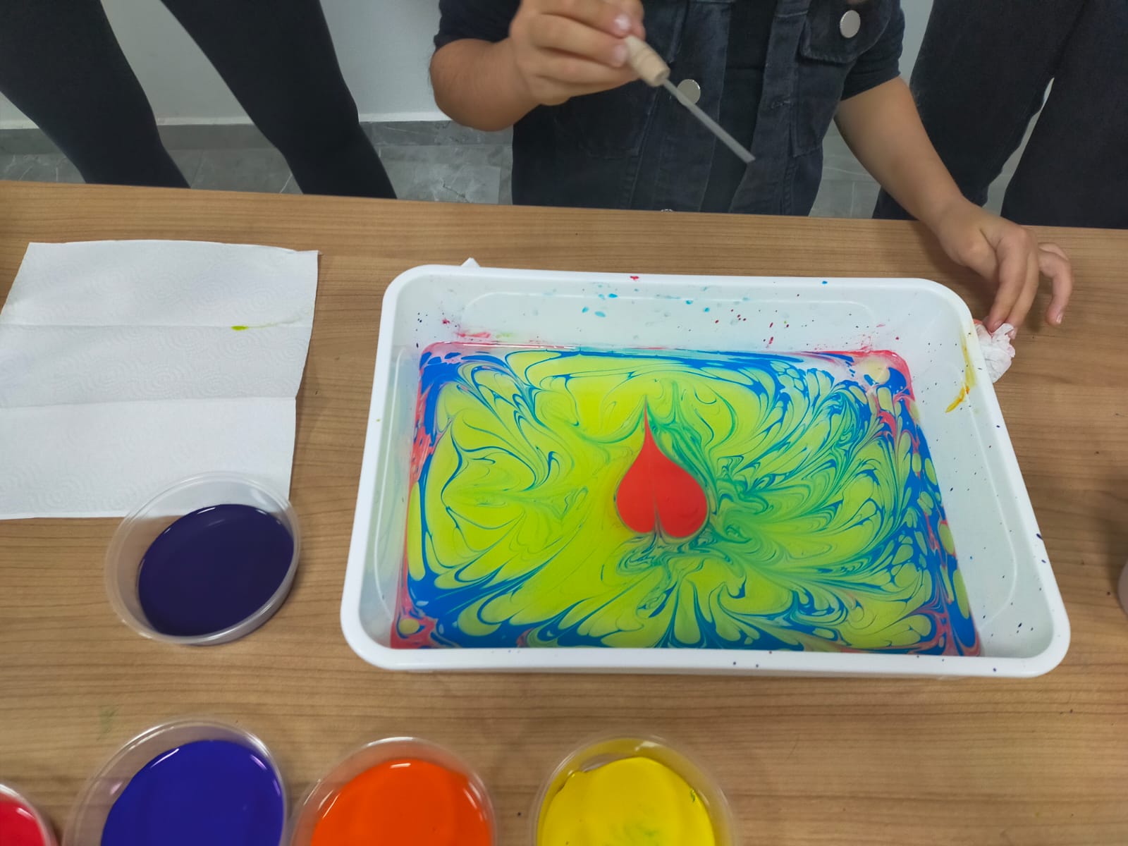 Uygulamalı olarak yürütülen atölye çalışmasında katılımcılar kendi ebru eserlerini ortaya koyarak ve sanatsal üretim sürecine dâhil olarak dikkat, odaklanma ve yaratıcılık becerilerini destekleyen verimli bir çalışma gerçekleştirmişlerdir. Atölye, personellerimizin sanatsal ifade alanında etkileşimli ve üretken bir ortamda bir araya gelmesine katkı sağlayarak tamamlanmıştır.