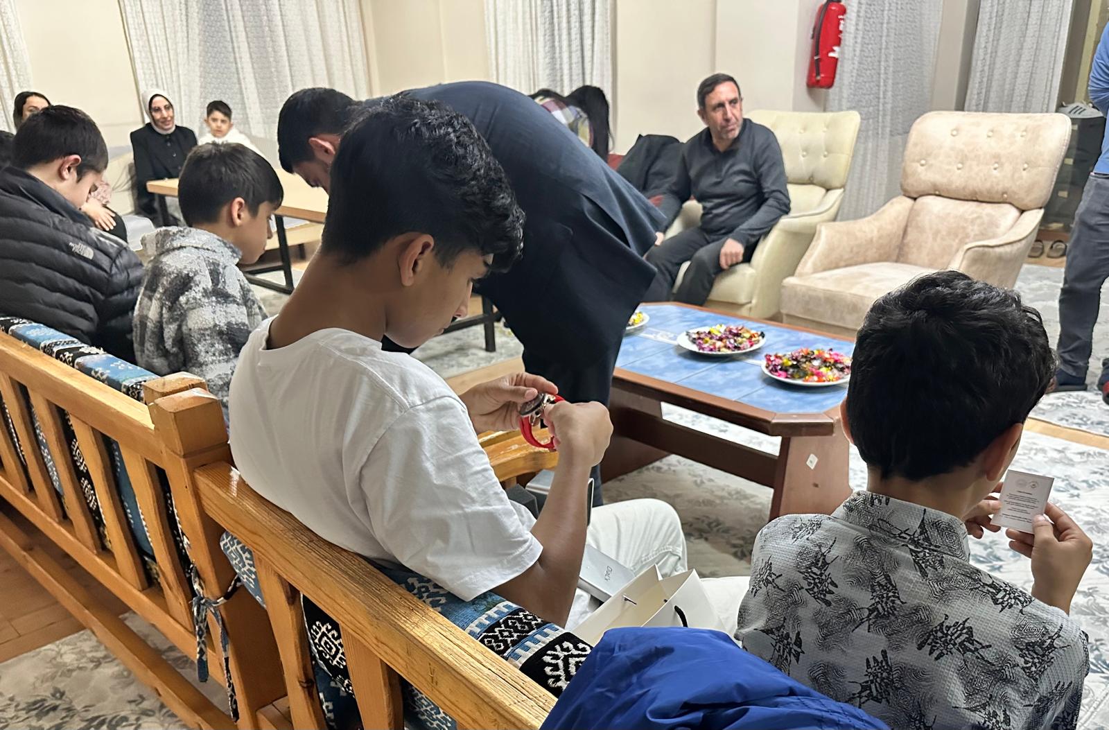 İl Müdürümüz Aydın Polat, kıymetli eşi Hatice Polat ve çocuk hizmetlerinden sorumlu İl Müdür Yardımcımız Ayşe Nur Baysal ile birlikte yatılı kuruluşlarımızda hizmet alan evlatlarımıza Sayın Bakanımız Mahinur Özdemir Göktaş tarafından gönderilen bayram hediyelerini takdim etti.