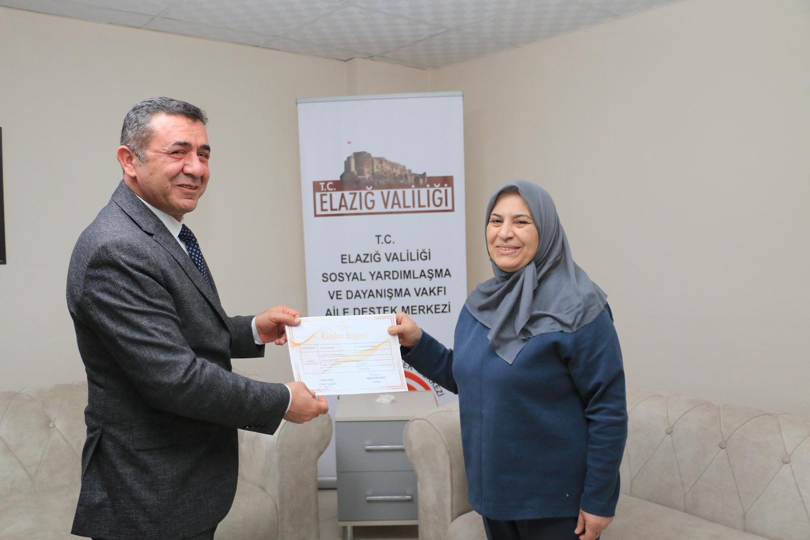 İl Müdürümüz Ömer Faruk ERGÜN, Modüler Aile Eğitim Programına katılım sağlayarak sertifika almaya hak kazanan Elazığ Aile Destek Merkezi kursiyerlerine yönelik düzenlenen sertifika törenine katılım sağladı.