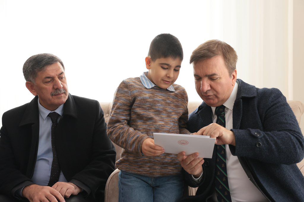 İlköğretim birinci sınıf öğrencisi minik Muhammed Ensar’ı aldığı ilk karne nedeniyle tebrik eden Sayın Valimiz, Bakanımız Sayın Mahinur Özdemir Göktaş’ın aziz şehidimiz Eren Öztürk’ün bizlere emaneti olan kıymetli evladı Muhammed Ensar Öztürk’e hitaben göndermiş oldukları mektup ve hediyeyi takdim etti.