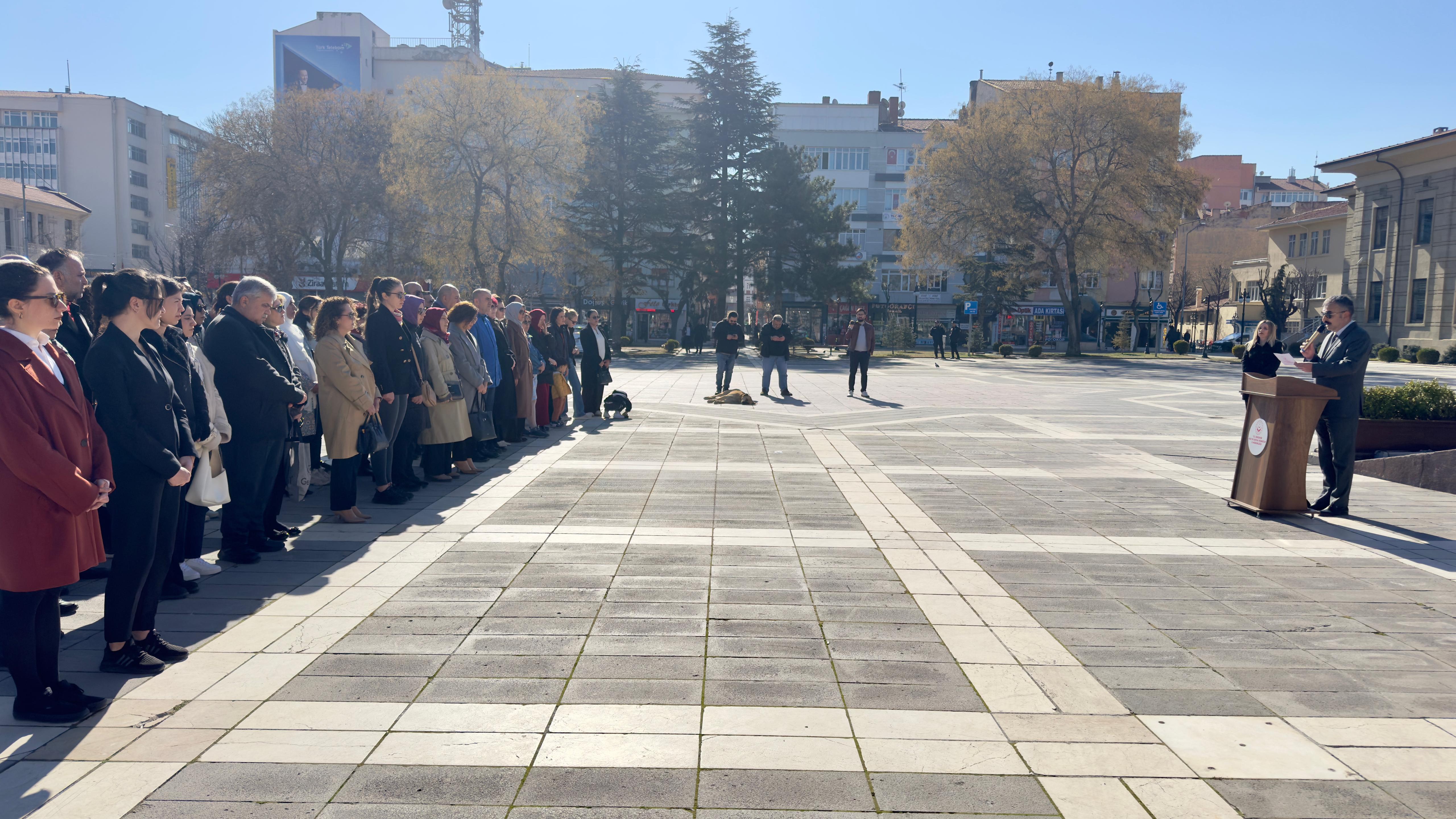 8 Mart Dünya Kadınlar Günü dolayısıyla İlimiz Vilayet Meydanı’ndaki Atatürk Anıtı’na çelenk sunma töreni gerçekleştirildi. İl Müdürlüğümüz ve bağlı kuruluşlarında görev yapan personelimizin katılımıyla gerçekleşen törende, İl Müdürümüz Sayın Orhan BAYRAK günün anlam ve önemine ilişkin bir konuşma yaptı.