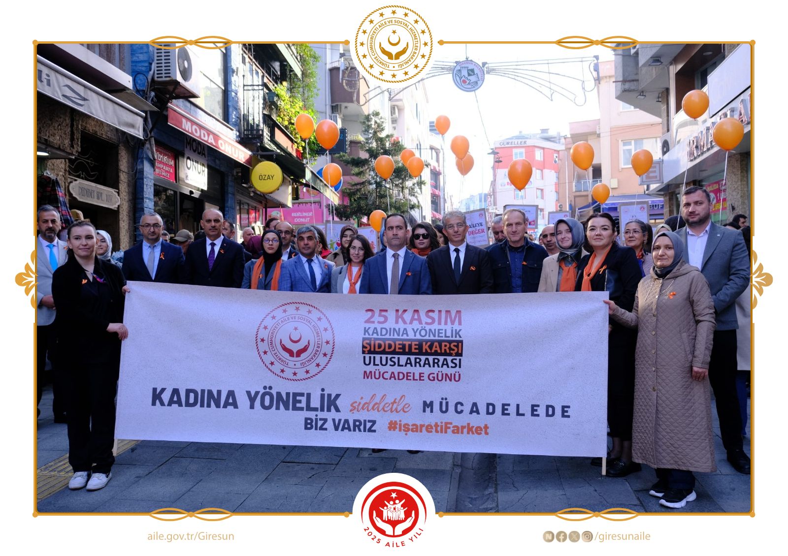 25 Kasım Kadına Yönelik Şiddete Karşı Uluslararası Mücadele Günü kapsamında, Giresun Aile ve Sosyal Hizmetler İl Müdürlüğü olarak toplumda farkındalığı güçlendirmek amacıyla farkındalık yürüyüşü gerçekleştirdik. Vali Yardımcımız Mehmet Fatih YAKINOĞLU’nun teşrifleri ve paydaş kurumlarımızın destekleriyle düzenlenen yürüyüş, şiddetsiz bir yaşam idealine verilen güçlü bir mesaj niteliği taşıdı.