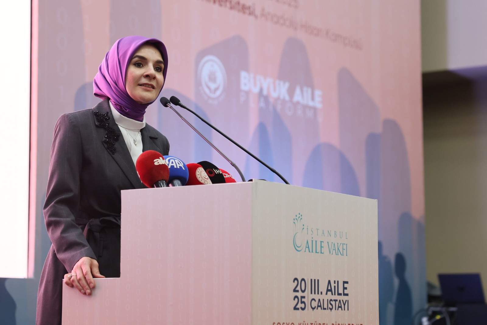"Dinamik nüfus yapımızı, toplumsal bağlarımızı ve aile değerlerimizi geleceğe taşıyan uzun soluklu politikalarımızı hep birlikte hayata geçireceğiz. Şunu özellikle vurgulamak isterim ki çocuklarımızın güvenli, değer temelli ve sevgi dolu ortamda büyümesi, gençlerimizin geleceğe umutla bakması, kadınların, yaşlılarımızın ve tüm aile bireylerinin huzurla yaşaması için güçlü bir aile ekosistemine ihtiyaç var. Bu noktada hepimize düşen sorumluluklar var. Ailenin karşı karşıya olduğu tehditlerle mücadele ancak topyekun bir bilinç ve kararlılıkla mümkün olabilir. Kamu kurumları, yerel yönetimler, sivil toplum kuruluşları, medya, akademi ve özel sektör, hepimiz kendi alanlarımızda aile dostu yaklaşımları yaygınlaştırmalıyız.