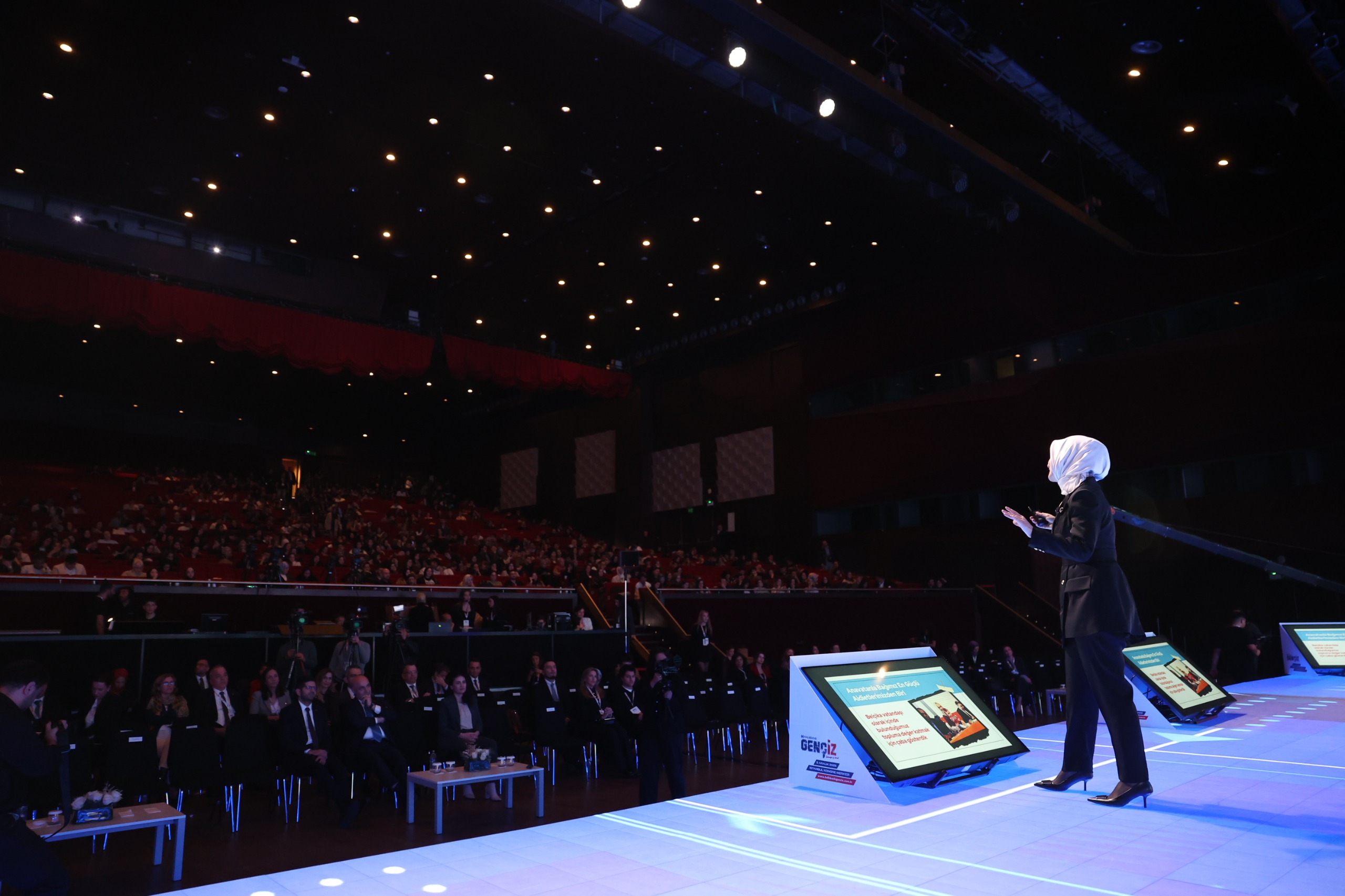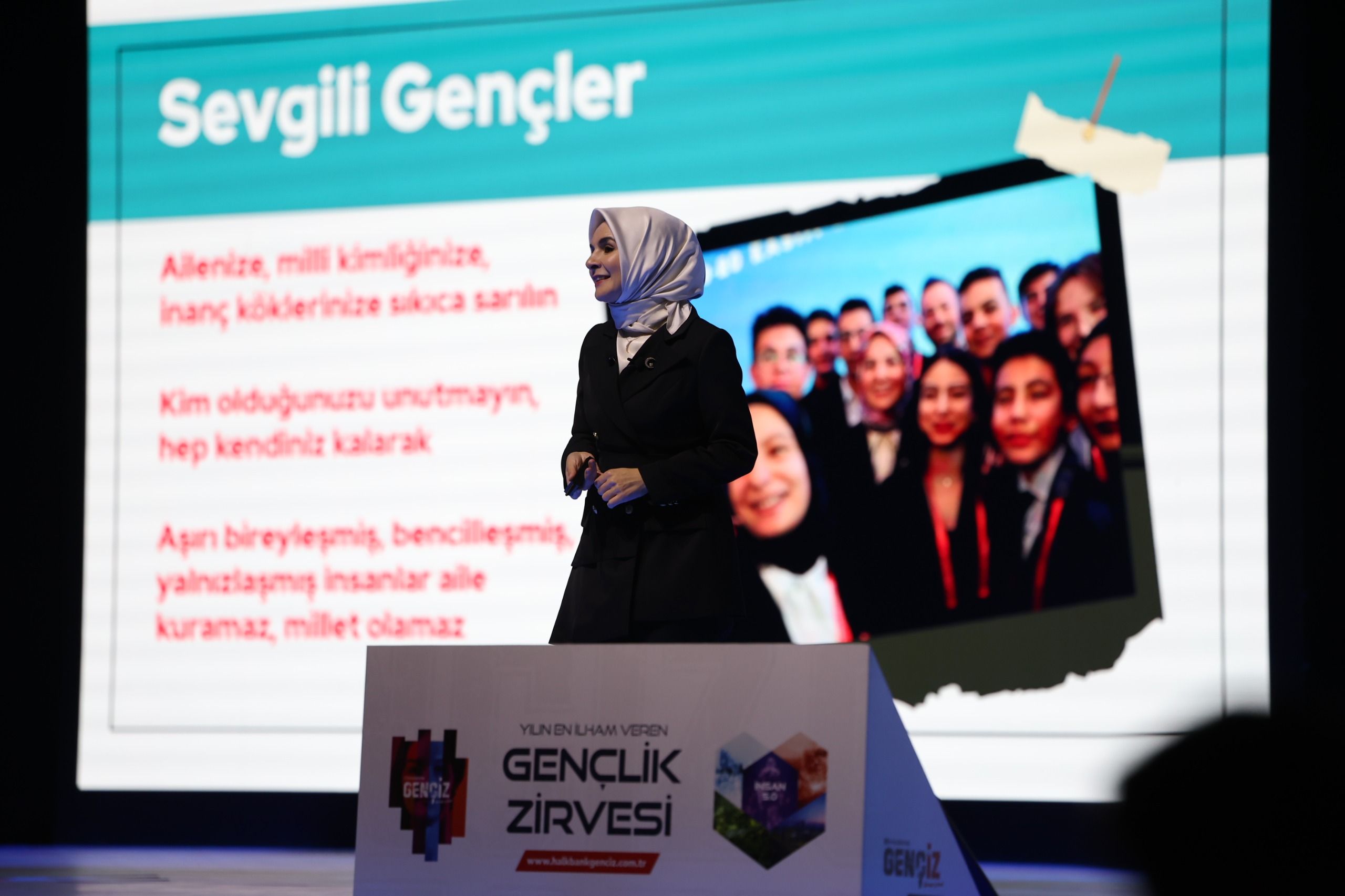 Aile ve Sosyal Hizmetler Bakanımız Mahinur Özdemir Göktaş, gençlere "Ailenize, milli kimliğinize, inanç köklerinize sıkı sıkı sarılın. Kim olduğunuzu unutmayın. Gittiğiniz yerlerde asla nereden geldiğinizi unutmayın. Gittiğiniz yerde ne iş yaparsanız yapın, hep en iyisini yapmaya çalışın." dedi
