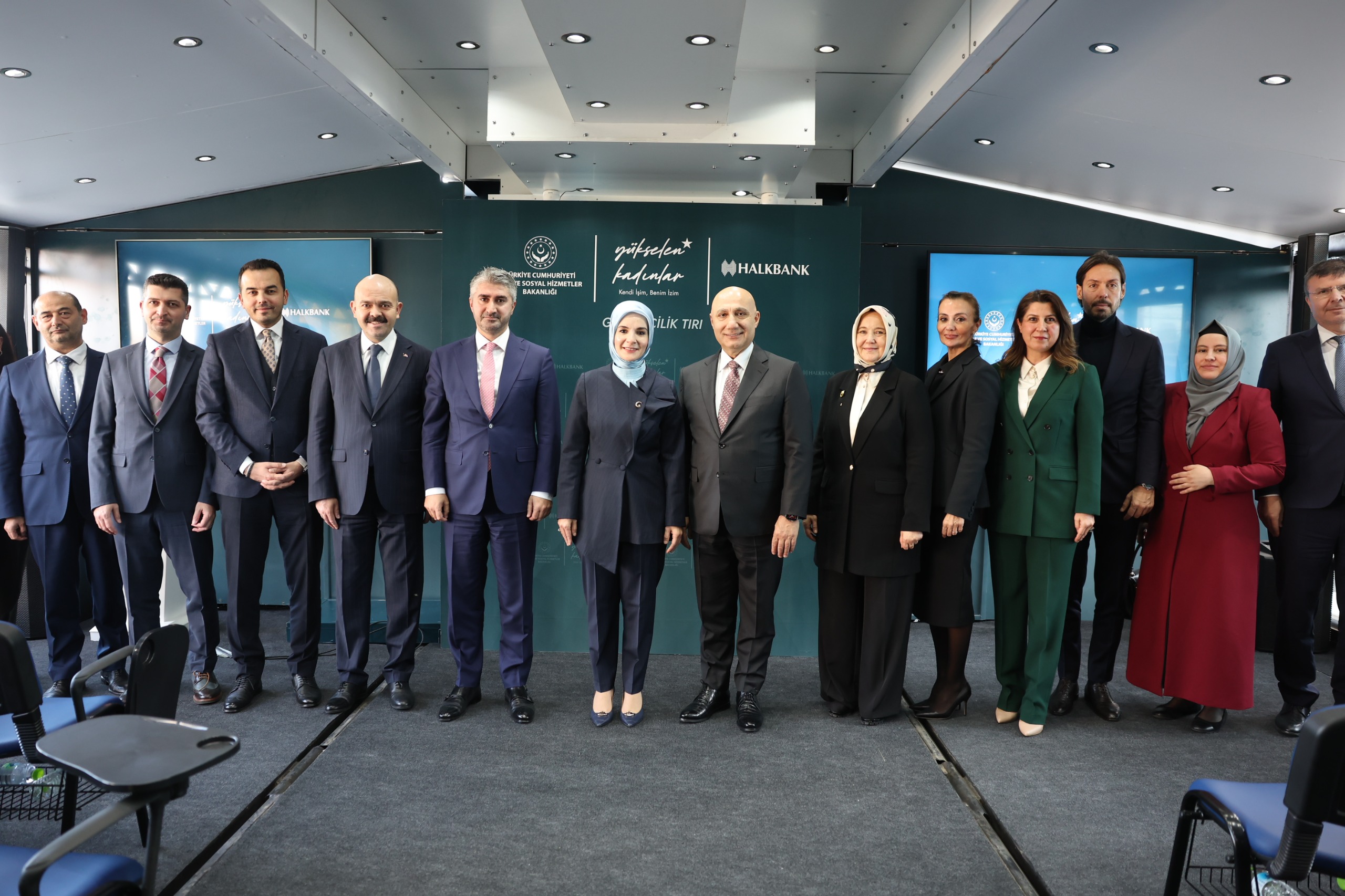 Törenin ardından Bakan Göktaş, eğitim tırının direksiyonunun başına geçti. Bu sembolik başlangıcın ardından Bakan Göktaş ve Halkbank Genel Müdürü Arslan kadınlara destek verecek olan tırı bakanlık bahçesinden Karadeniz'e uğurladı.