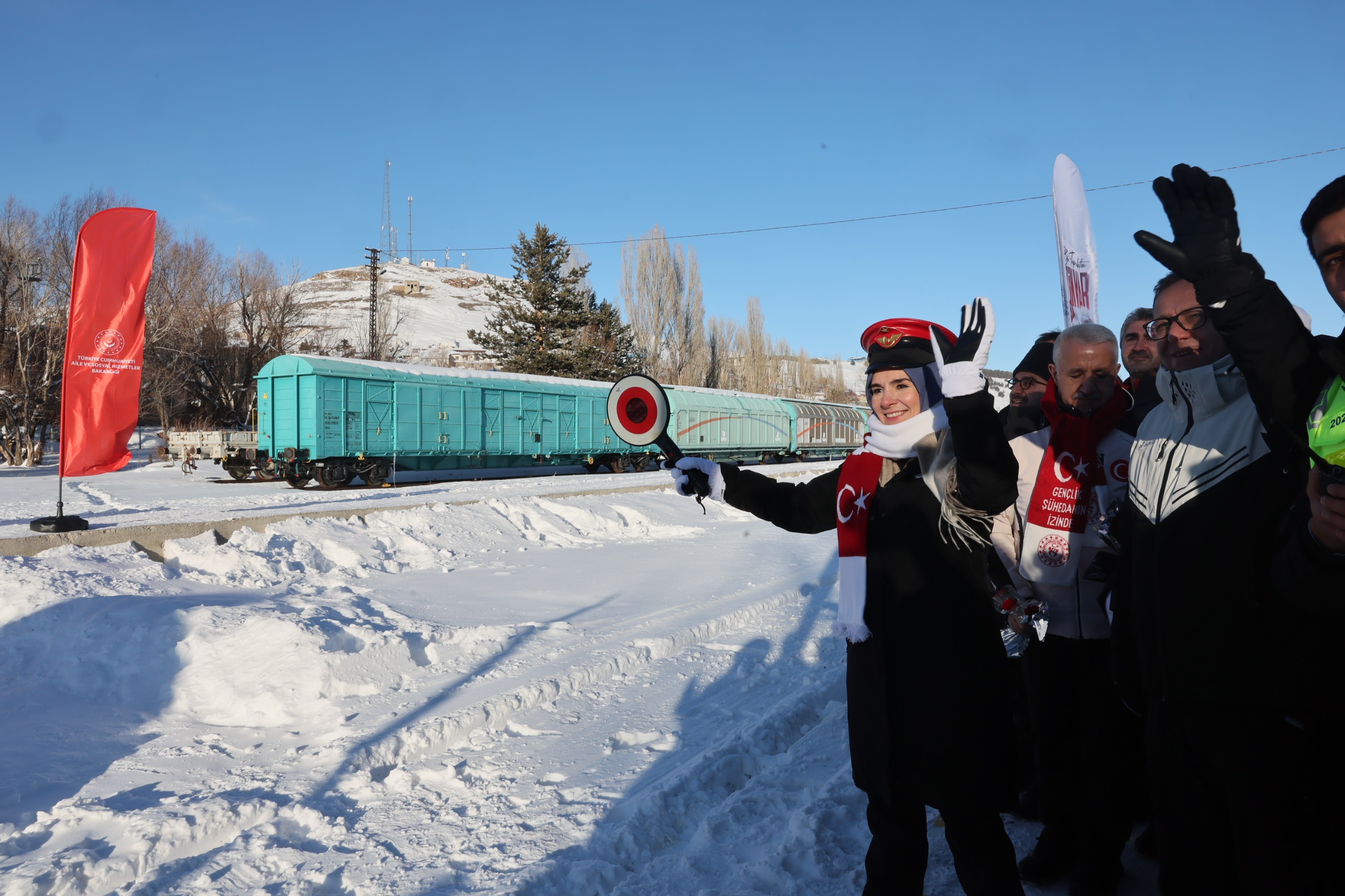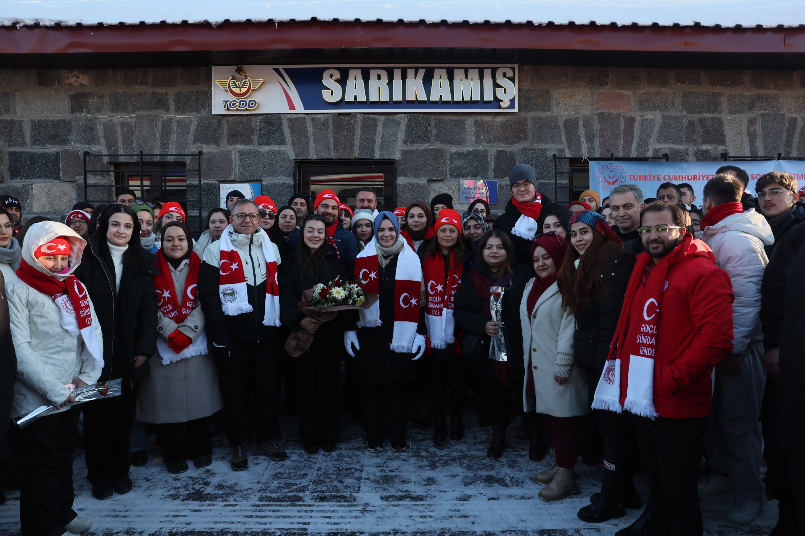 Bakan Göktaş ardından Sarıkamış Şehitleri'ni anma etkinlikleri için Ankara'dan Kars'a "Sarıkamış Ekspresi" ile gelen gençleri karşıladı.