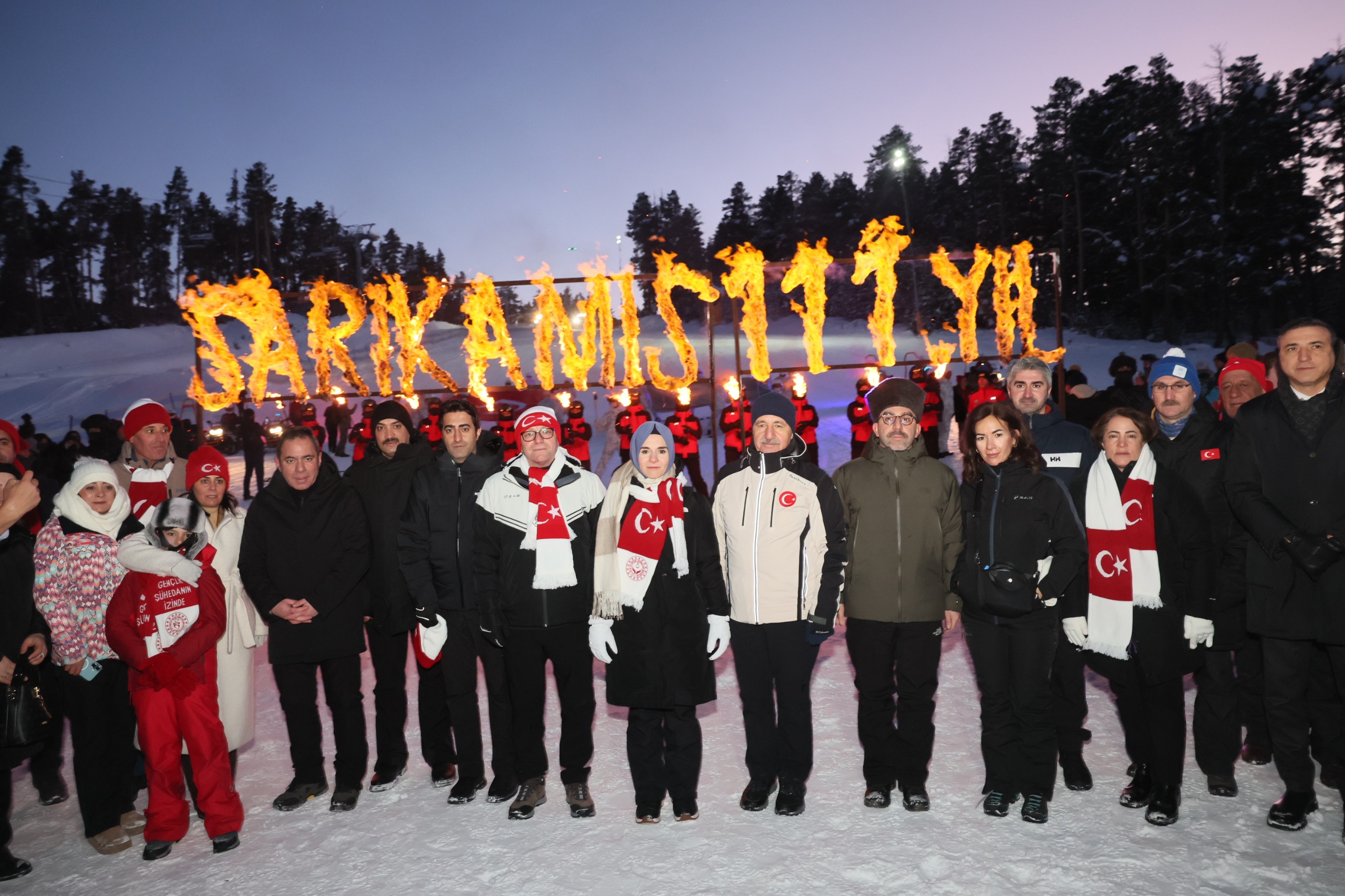 Sarıkamış Kayak Merkezi'nde düzenlenen etkinlikte, Çanakkale'deki 57. Alaya ithafen Sarıkamış'ta konuşlanan 57. Komando Taburu'nda görevli komandolar ve JAK timleri, ellerinde Türk bayrakları ve Atatürk posterleri taşıyarak meşalelerle zirveden indi.