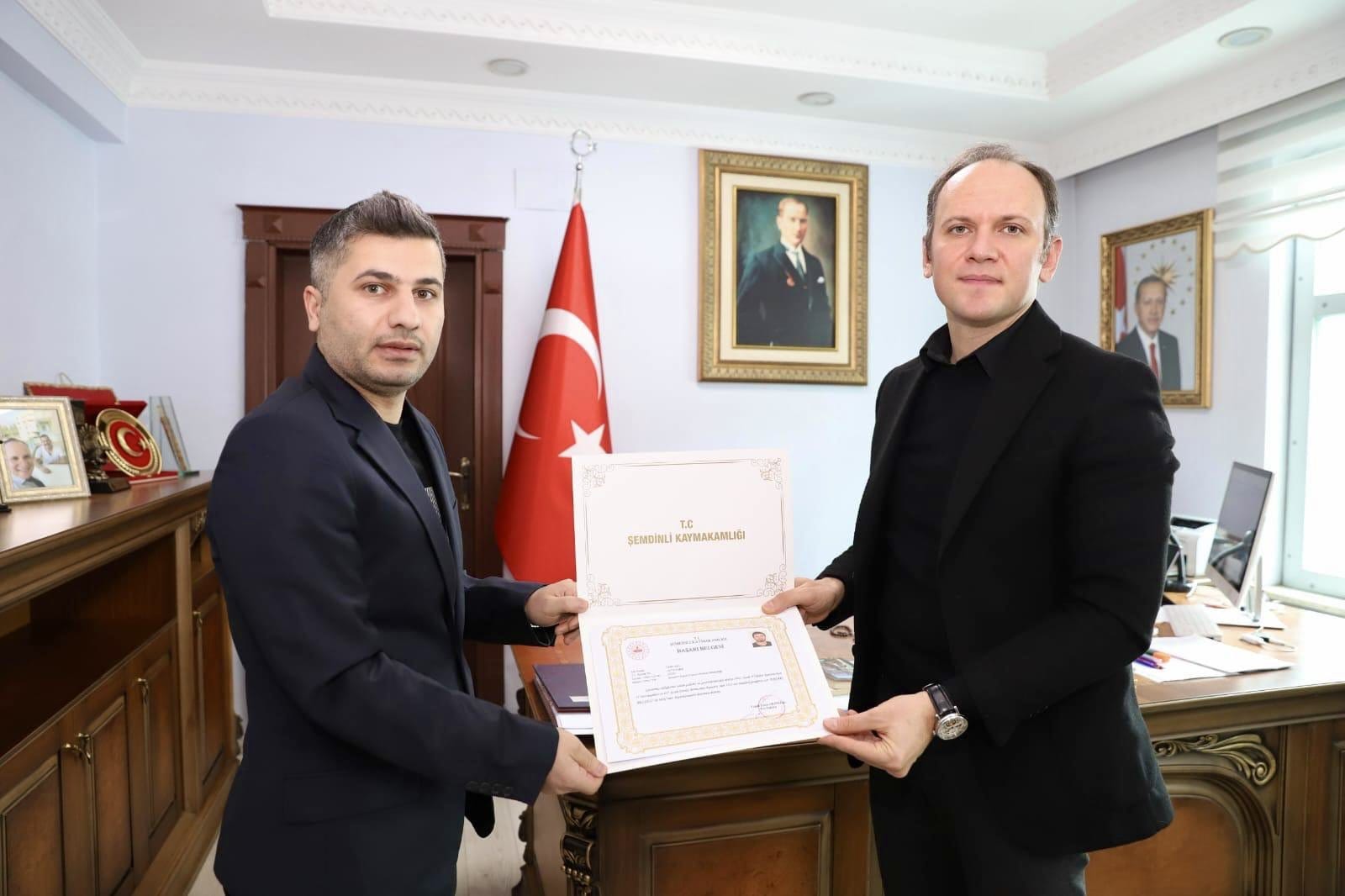 Kaymakam Akpınar, vatandaşlara zamanında ve etkin şekilde hizmet sunulmasında gösterilen gayretlerden dolayı personele başarı belgesi takdim ederek teşekkür etti.