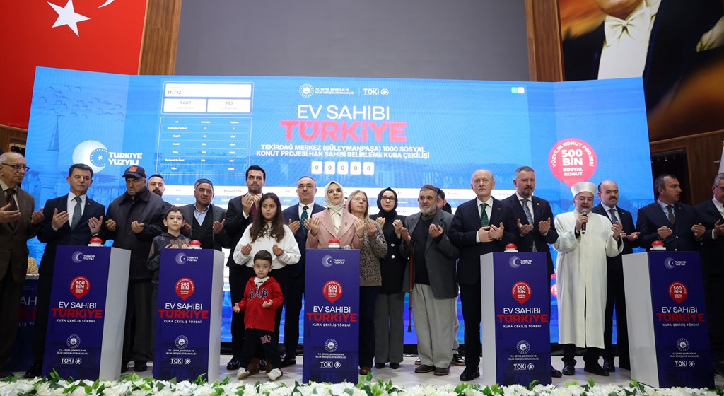 "Bugün Tekirdağ'ımızda 6 bin 865 konutun hak sahiplerini belirleyeceğiz. Yüzyılın Konut Projesi engelli vatandaşlarımız ve şehit yakınlarımız için ayrılan özel kontenjanla hiç kimseyi geride bırakmayan yaklaşımın bir yansımasıdır. Çünkü konut, sadece bir bina değildir. Şehirlerin nitelikli yaşam alanlarına kavuşması, mahallenin huzuru, ailenin birliğidir. Bu anlamda hayata geçirilen her bir sosyal konut projesi 'aile dostu ekosistem' anlayışımızın kıymetli bir parçasıdır."