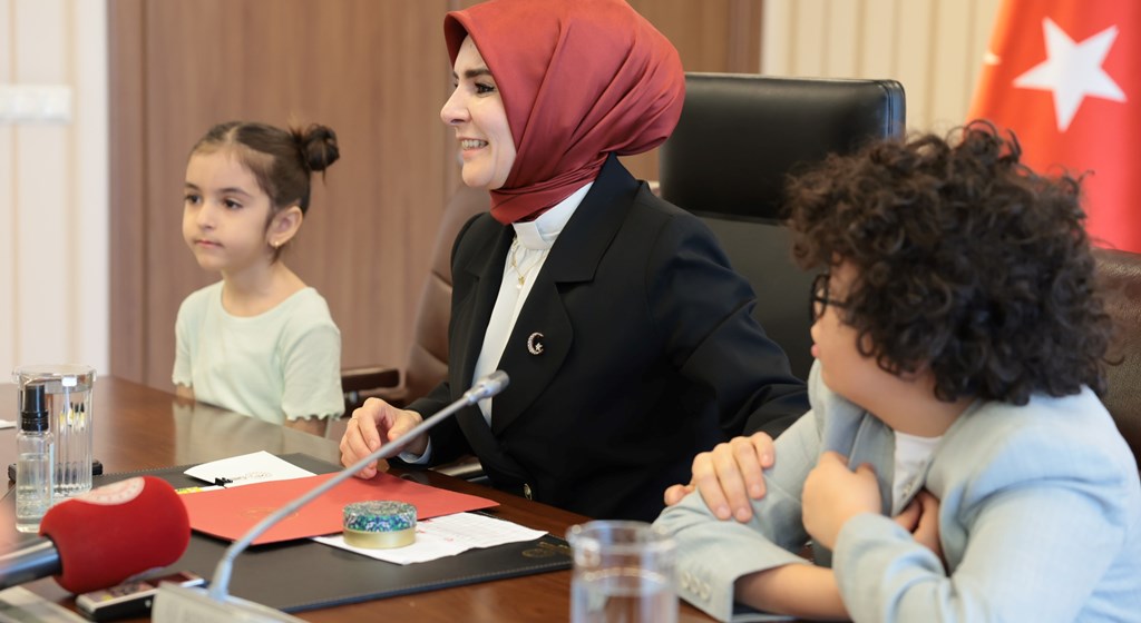 Aile ve Sosyal Hizmetler Bakanımız Mahinur Özdemir Göktaş, 23 Nisan Ulusal Egemenlik ve Çocuk Bayramı dolayısıyla çocukları bakanlıkta ağırladı