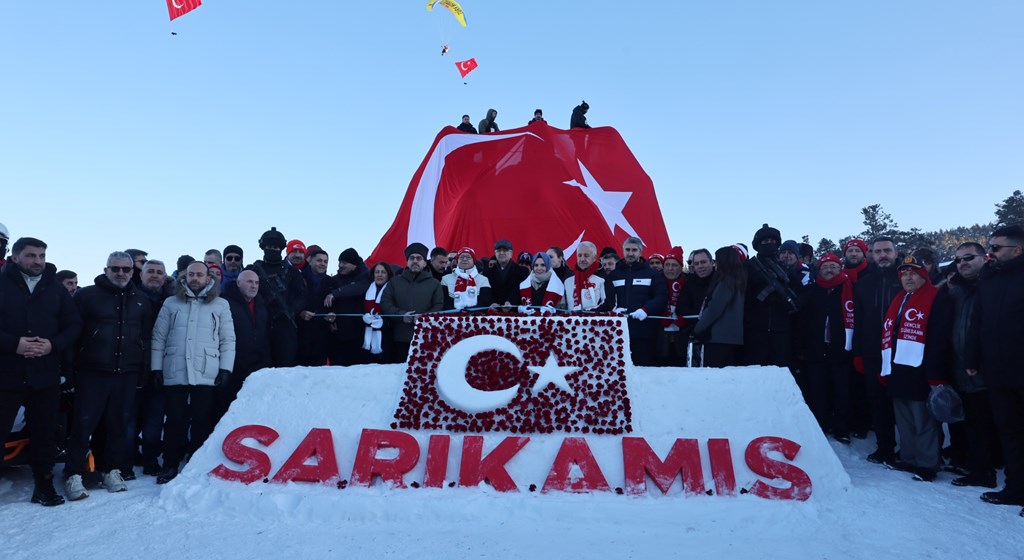 Sarıkamış Kayak Merkezi'nde düzenlenen etkinlikte, Çanakkale'deki 57. Alaya ithafen Sarıkamış'ta konuşlanan 57. Komando Taburu'nda görevli komandolar ve JAK timleri, ellerinde Türk bayrakları ve Atatürk posterleri taşıyarak meşalelerle zirveden indi.