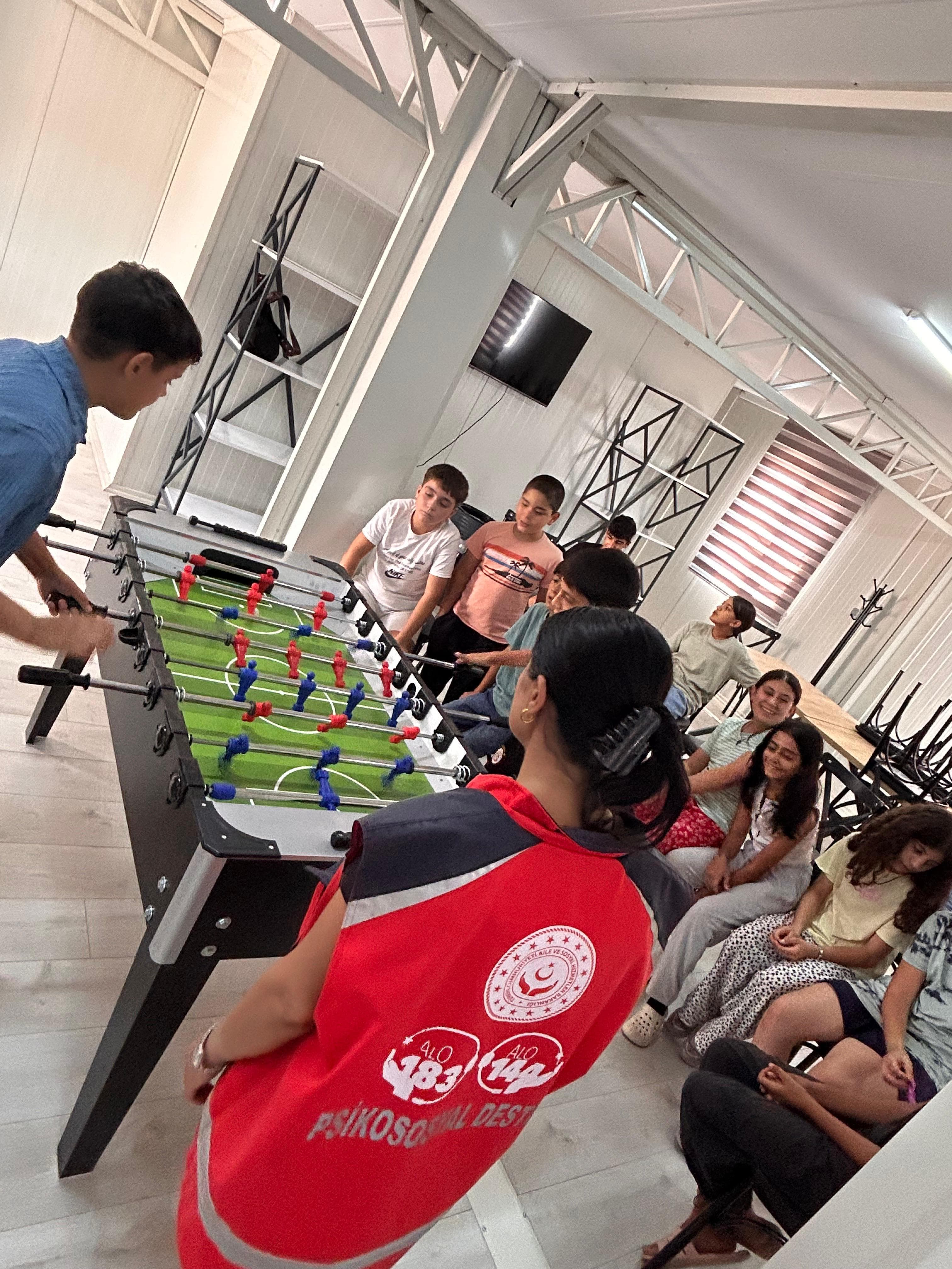 Bu kapsamda, 02 Ağustos 2025 tarihinde saat 13.00-15.00 arasında Pazarcık Sosyal Hizmet Merkezi koordinesinde, M. Özdal Komşuculuk Merkezi ev sahipliğinde ve TARDE iş birliğiyle çocuklara yönelik ödüllü Masa Tenisi ve Langırt Turnuvası düzenlendi.