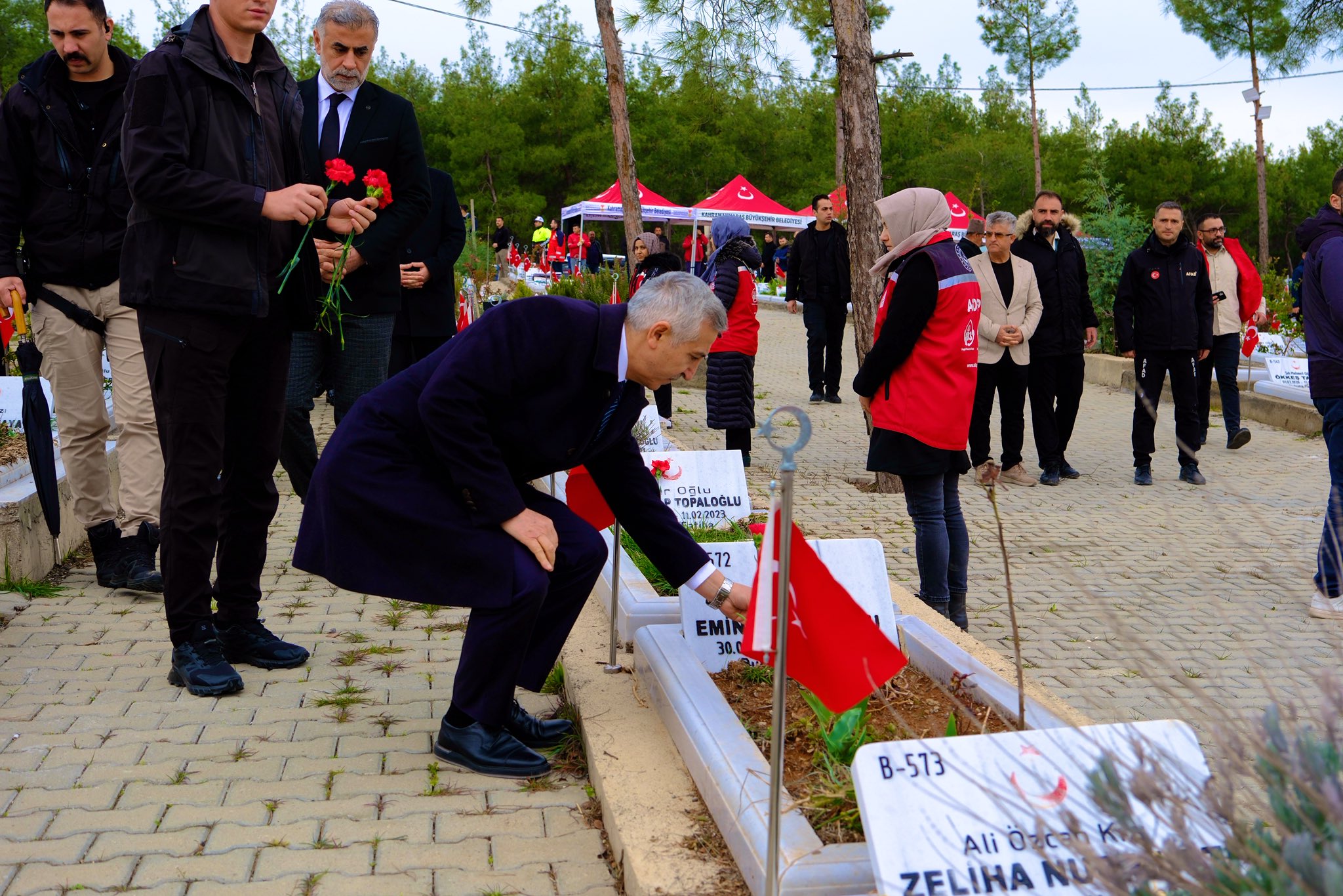 Kahramanmaraş Valimiz Mükerrem Ünlüer, İl Müdürümüz Emre Çalğan ve il protokolü, Ramazan Bayramı öncesinde Şeyh Adil Mezarlığı’nda kabirleri bulunan 6 Şubat Deprem Şehitlerimizi ziyaret etti.