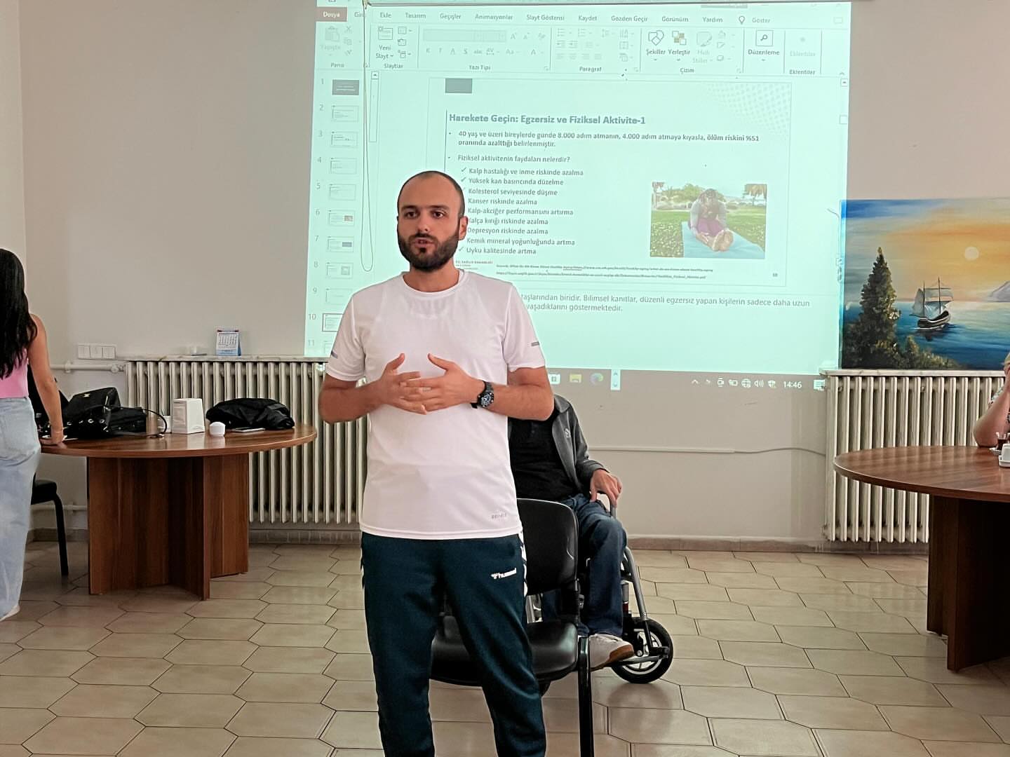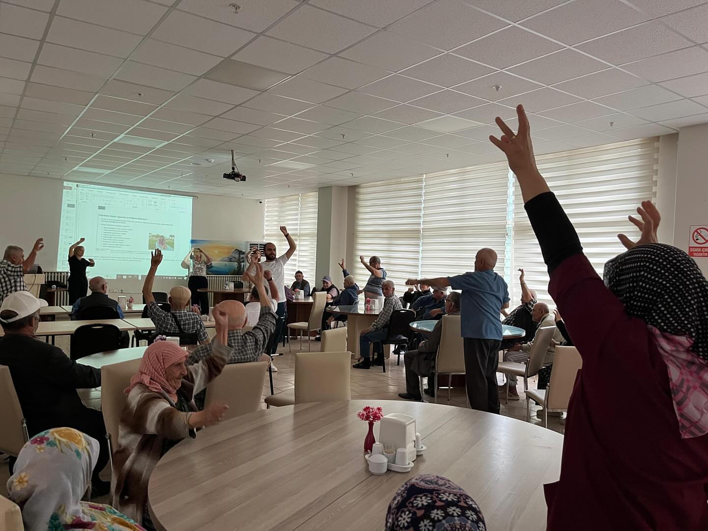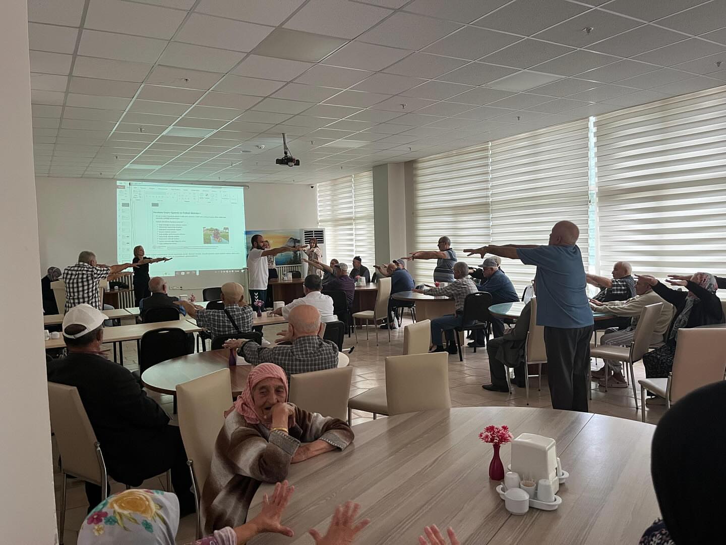 Fizyoterapist eşliğinde masa başı egzersizleriyle hem bedenlerini hem de ruhlarını hareketlendirdik.