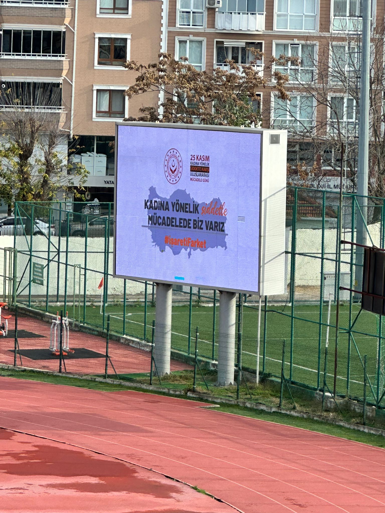 30.11.2025 tarihinde Kırklarelispor–Somaspor karşılaşmasının oynandığı Kırklareli Atatürk Stadyumu’nda, maç boyunca stat dijital ekranlarında kadına yönelik şiddetle mücadele temalı afişler ile #işaretiFarket temalı video yayınlandı. Taraftarların yoğun ilgi gösterdiği karşılaşmada, binlerce kişinin bulunduğu tribünlerde kamu spotu ve bilgilendirici afişler geniş kitlelere ulaşarak farkındalık oluşturdu.
