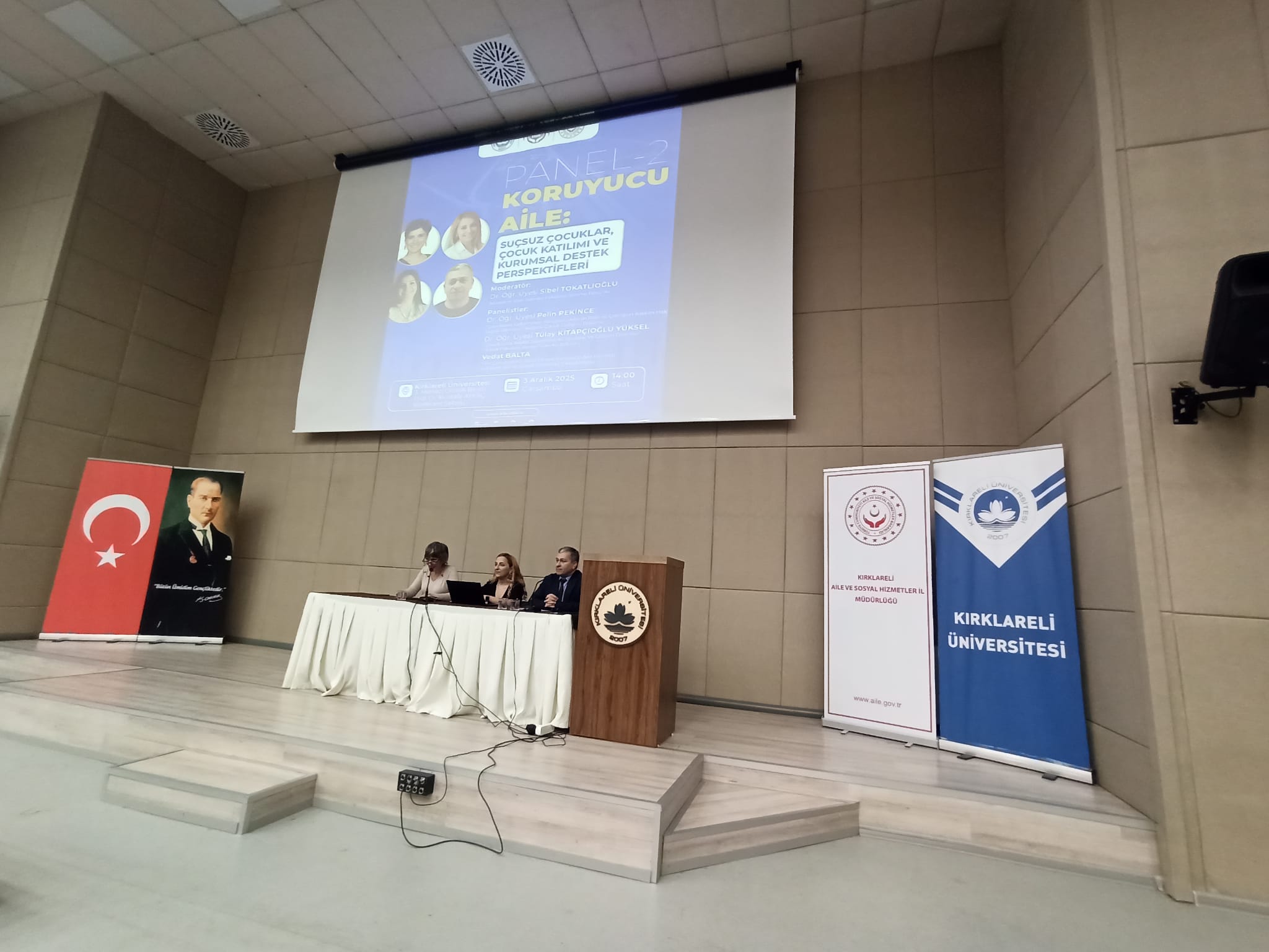 Kırklareli Üniversitesi ile Kırklareli Aile ve Sosyal Hizmetler İl Müdürlüğü iş birliğinde, 2025 Aile Yılı etkinlikleri kapsamında “Koruyucu Aile: Suçsuz Çocuklar, Çocuk Katılımı ve Kurumsal Destek Perspektifleri” başlıklı panel gerçekleştirildi. Çocuk koruma hizmetlerinin güçlendirilmesi, çocuk katılımı ve kurumlar arası destek mekanizmalarının geliştirilmesi konularına odaklanan panel, akademisyenler, kamu kurum temsilcileri ve öğrencilerin yoğun ilgisiyle takip edildi.
