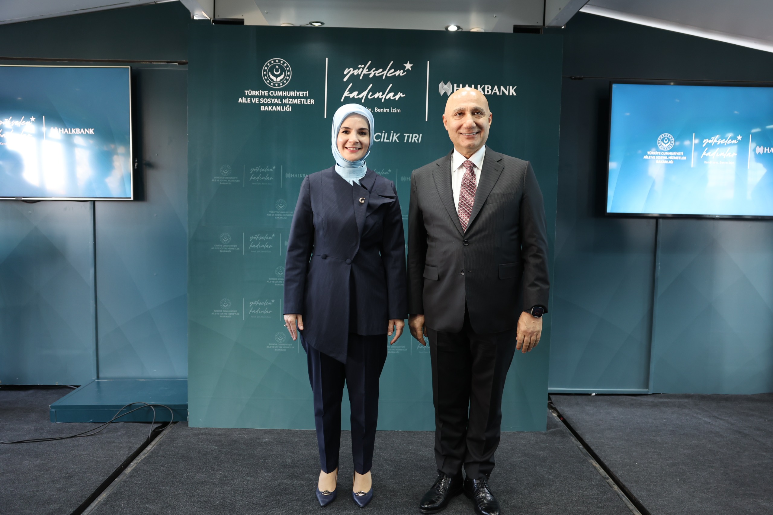 Törenin ardından Bakan Göktaş, eğitim tırının direksiyonunun başına geçti. Bu sembolik başlangıcın ardından Bakan Göktaş ve Halkbank Genel Müdürü Arslan kadınlara destek verecek olan tırı bakanlık bahçesinden Karadeniz'e uğurladı.