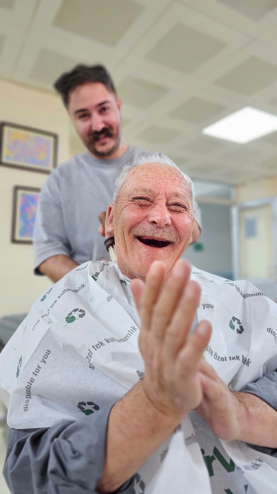 Müdürlüğümüze bağlı Huzurevi Yaşlı Bakım ve Rehabilitasyon Merkezini ziyaret eden hayırsever kuaförler, huzurevi sakinlerimizin saç bakımlarını gerçekleştirerek onlara keyifli anlar yaşattılar.