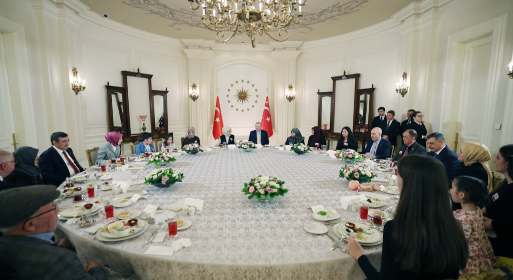 İftarda, Cumhurbaşkanı Erdoğan'ın masasında eşi Emine Erdoğan, TBMM Başkanı Numan Kurtulmuş, Cumhurbaşkanı Yardımcısı Cevdet Yılmaz, Aile ve Sosyal Hizmetler Bakanı Mahinur Özdemir Göktaş, İçişleri Bakanı Mustafa Çiftçi, Milli Savunma Bakanı Yaşar Güler ve şehit aileleri yer aldı.